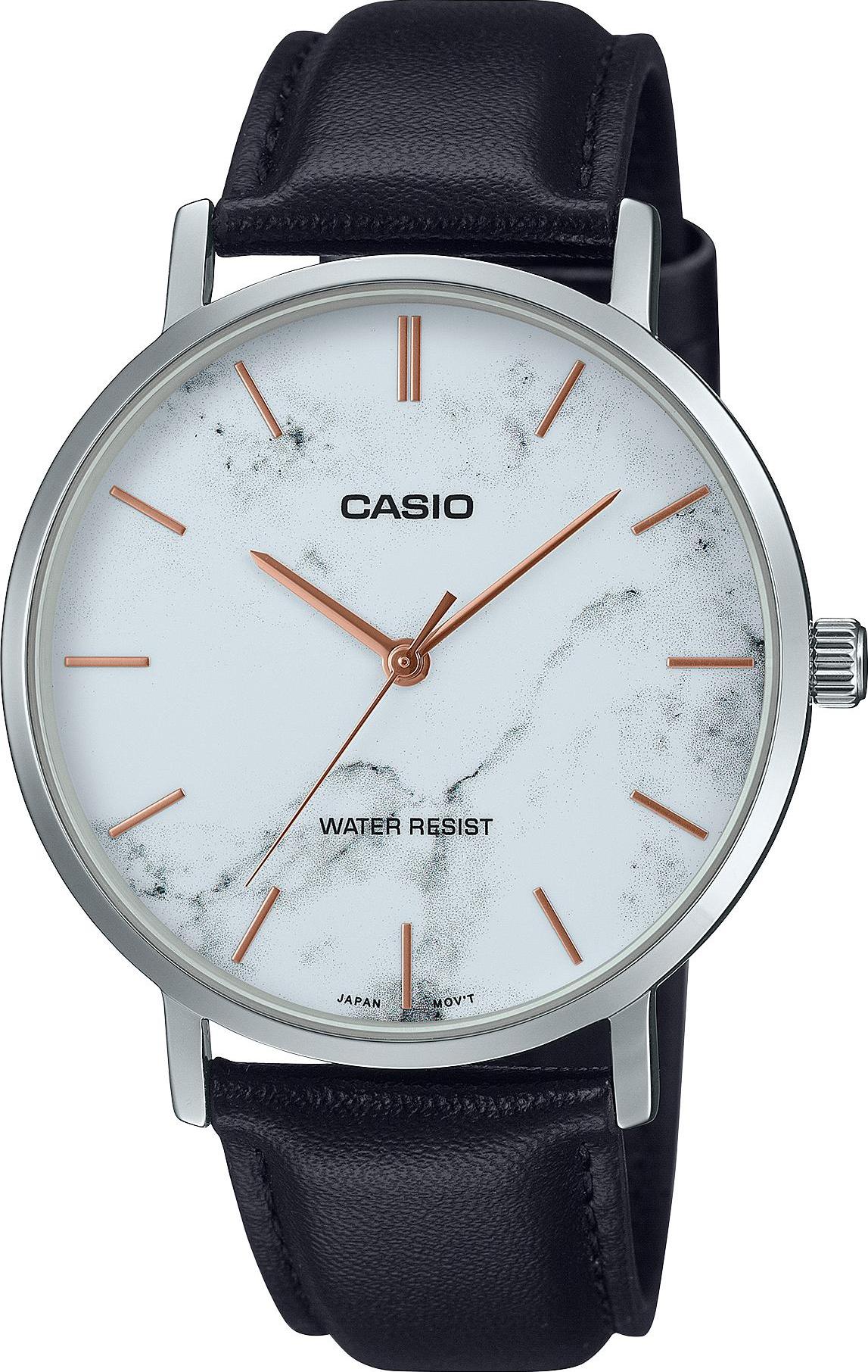 Мужские наручные часы Casio Collection MTP-VT01LM-7A. Точный кварцевый механизм с аналоговой индикацией. Ремешок изготовлен из кожи. Аккумулятор обеспечивает часы достаточным питанием приблизительно на 3 года. Браслет из нержавеющей стали. Прочное, устойчивое к царапинам минеральное стекло защищает часы от повреждений. Часы являются водонепроницаемыми до 3 Бар. Цвет циферблата: Серебристый. Цвет корпуса: Белый. Цвет корпуса: Черный. Высота (с ушками): 46 мм. Толщина: 8 мм. Гарантия: 2 года.