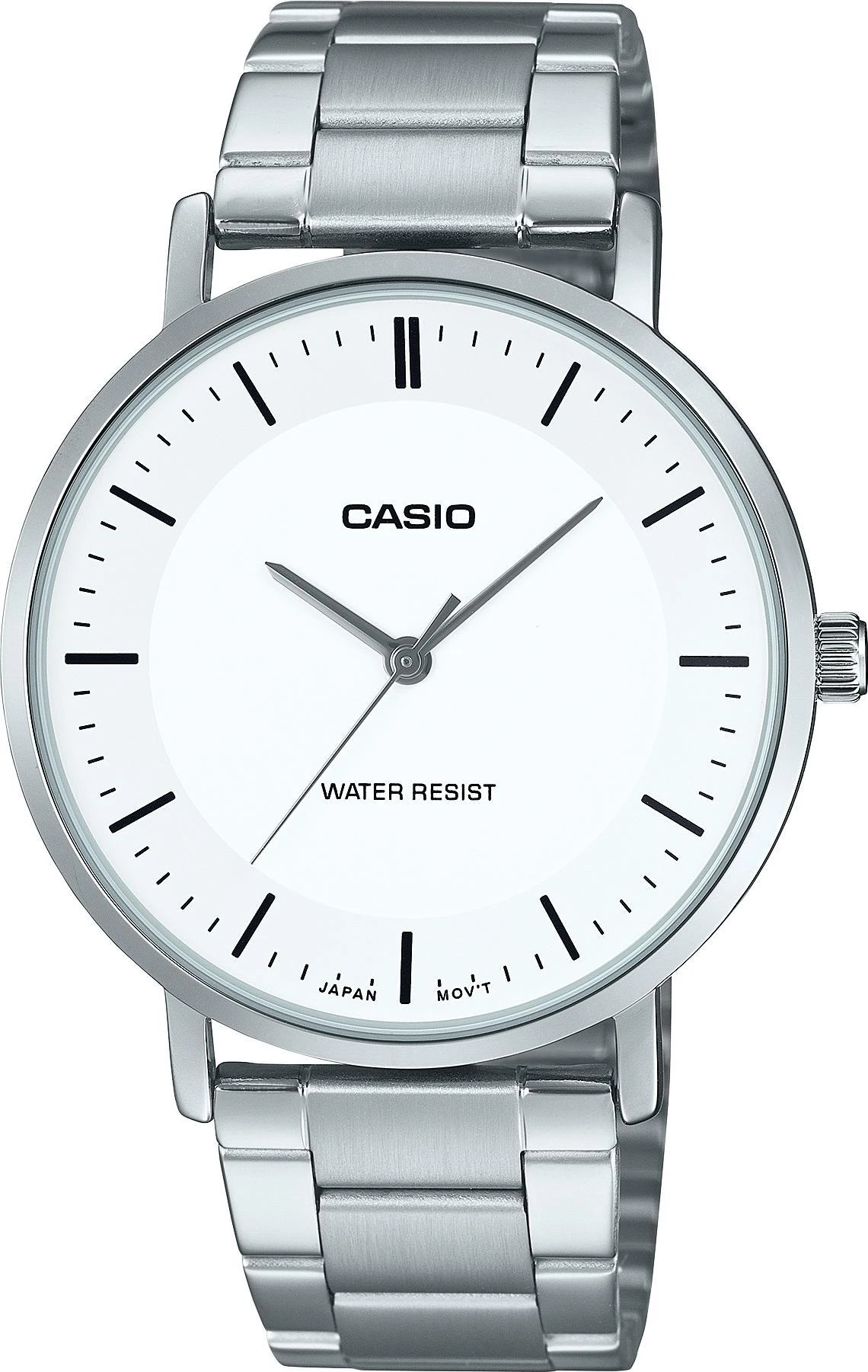 Мужские наручные часы Casio Collection MTP-VT04D-7E. Точный кварцевый механизм с аналоговой индикацией. Браслет из нержавеющей стали. Аккумулятор обеспечивает часы достаточным питанием приблизительно на 3 года. Браслет из нержавеющей стали. Прочное, устойчивое к царапинам минеральное стекло защищает часы от повреждений. Часы являются водонепроницаемыми до 3 Бар. Цвет циферблата: Серебристый. Цвет корпуса: Белый. Толщина: 8.2 мм. Гарантия: 2 года.