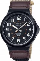 Мужские наручные часы Casio Collection MW-240B-5B. Точный кварцевый механизм с аналоговой индикацией. Текстильный ремешок. Аккумулятор обеспечивает часы достаточным питанием приблизительно на 3 года. Полимерный ремешок. Натуральный полимерный материал является идеальным для изготовления ремешка благодаря своей чрезвычайной прочности и гибкости. Органическое стекло. Часы являются водонепроницаемыми до 5 Бар. Цвет циферблата: Черный. Цвет корпуса: Черный. На стрелки и отметки нанесен светонакопительный состав, благодаря этому считывать информацию с циферблата возможно и в темноте. Высота (с ушками): 48 мм. Толщина: 10 мм. Гарантия: 2 года.