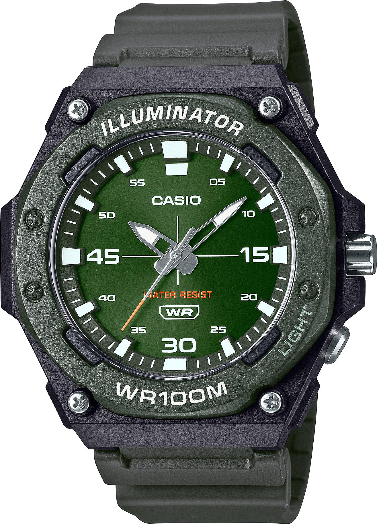 Мужские наручные часы Casio Collection MW-620H-3A. Точный кварцевый механизм с аналоговой индикацией. Полимерный ремешок. Натуральный полимерный материал является идеальным для изготовления ремешка благодаря своей чрезвычайной прочности и гибкости. Полимерный ремешок. Натуральный полимерный материал является идеальным для изготовления ремешка благодаря своей чрезвычайной прочности и гибкости. Органическое стекло. Часы являются водонепроницаемыми до 10 Бар. Цвет циферблата: Черный. Цвет корпуса: Зеленый. На стрелки и отметки нанесен светонакопительный состав, благодаря этому считывать информацию с циферблата возможно и в темноте. Высота (с ушками): 51 мм. Толщина: 14 мм. Гарантия: 2 года.