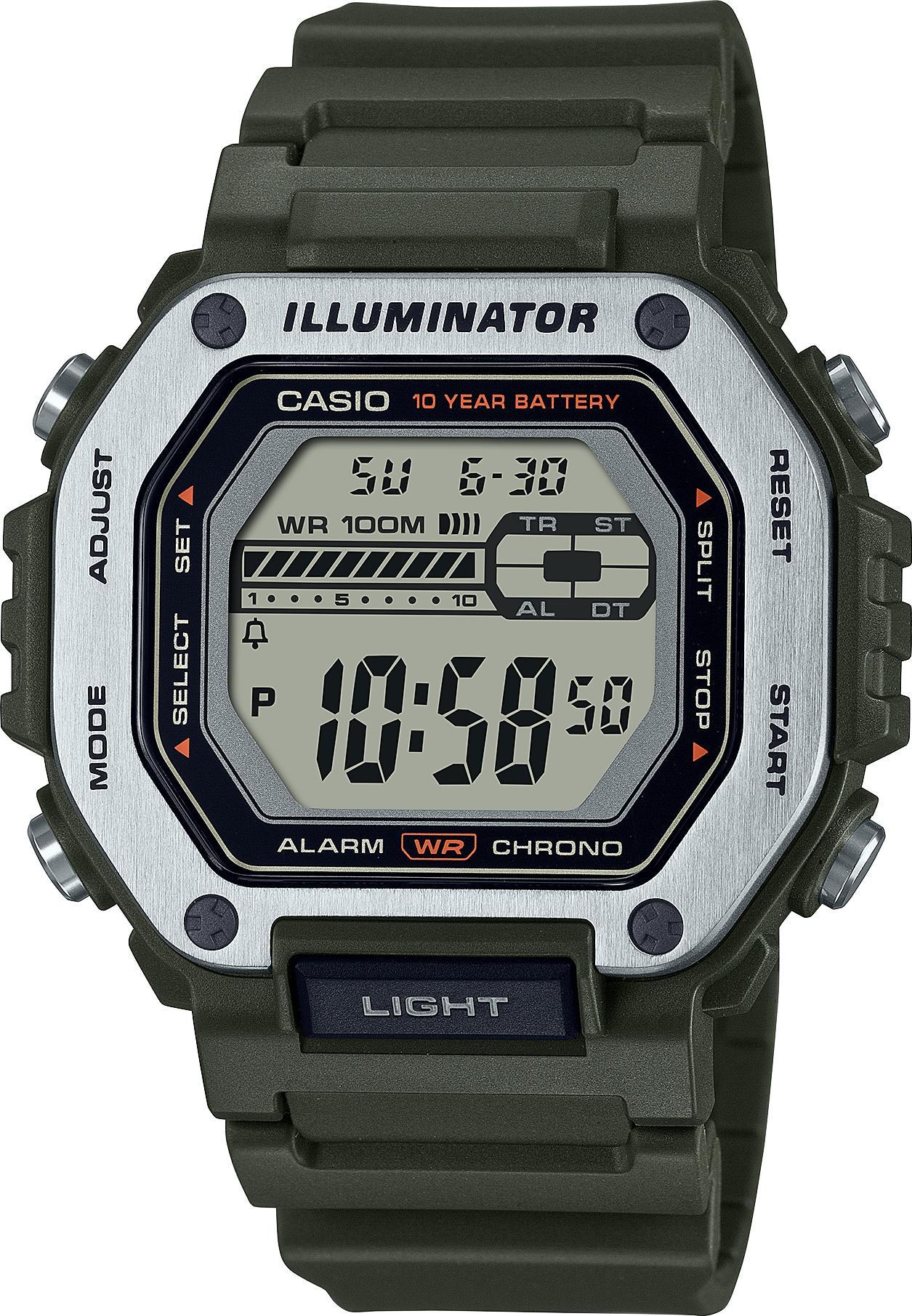 Мужские наручные часы Casio Collection MWD-110H-3A. Точный кварцевый механизм с цифровой индикацией. Корпус изготовлен из высококачественной нержавеющей стали 316L с высокими антикоррозийными свойствами. Светодиодная подсветка. На циферблате отображается текущее число, месяц и день недели. Ударопрочная конструкция часов защищает от ударов и вибрации. Функция хронографа. Функция таймера. Таймеры обратного отсчета напомнят Вам о текущих или особенных событиях, издав звуковой сигнал в установленное время. Функция будильника. Аккумулятор обеспечивает часы достаточным питанием приблизительно на 10 лет. После настройки автоматический календарь всегда отображает точную дату. Отображение времени возможно в 12-часовом или 24-часовом формате. Полимерный ремешок. Натуральный полимерный материал является идеальным для изготовления ремешка благодаря своей чрезвычайной прочности и гибкости. Органическое стекло. Часы являются водонепроницаемыми до 10 Бар. Цвет корпуса: Серебристый. Цвет циферблата: Серый. Ширина (с заводной головкой): 47мм. Толщина: 12мм. Гарантия: 2 года. Другие наименования модели: MWD-110H-3AVEF, MWD-110H-3AVD.