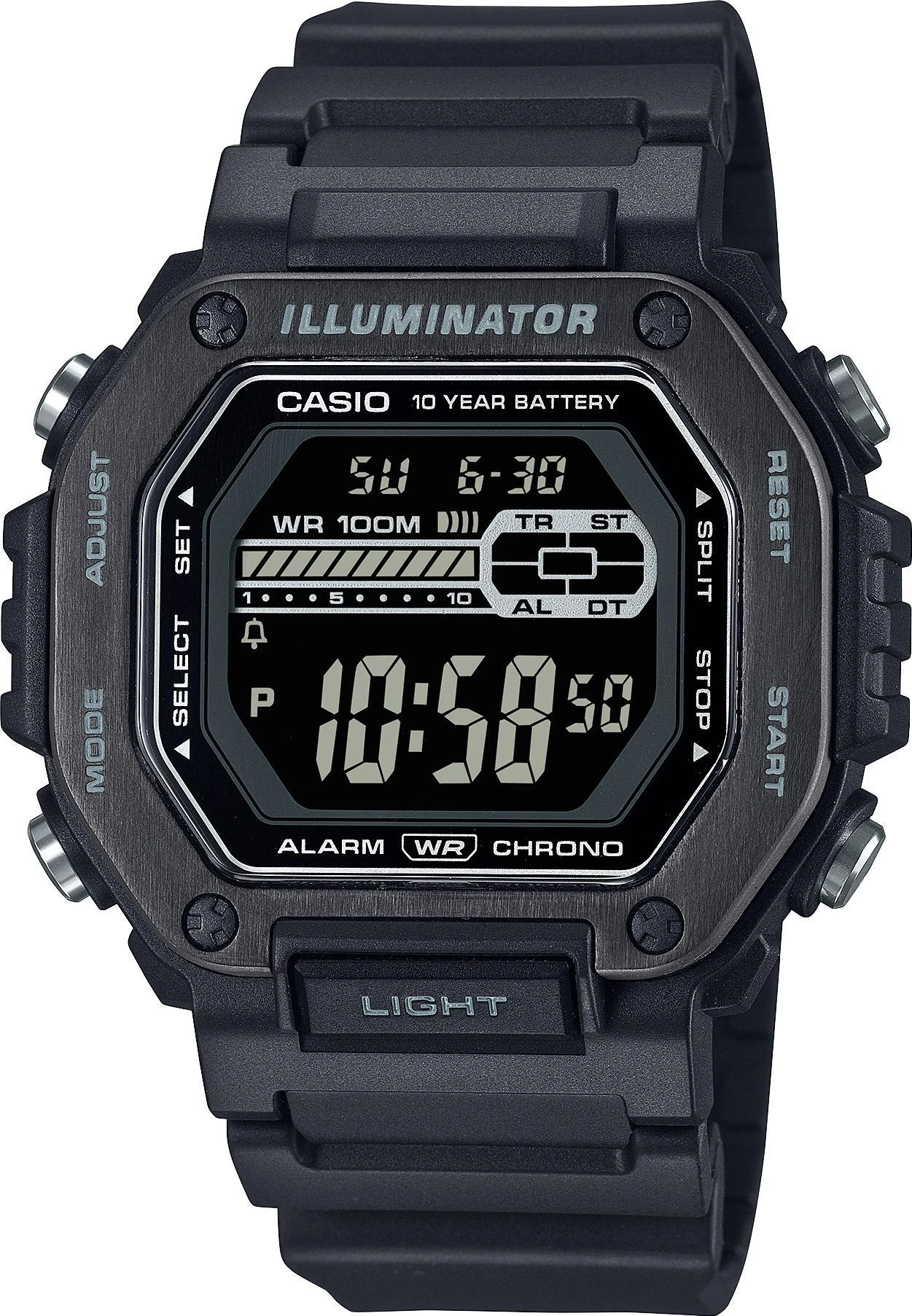 Мужские наручные часы Casio Collection MWD-110HB-1B. Точный кварцевый механизм с цифровой индикацей. Полимерный ремешок. Натуральный полимерный материал является идеальным для изготовления ремешка благодаря своей чрезвычайной прочности и гибкости. После настройки автоматический календарь всегда отображает точную дату. Для подсветки дисплея используется светодиод, а так же имеет функцию автоматического включения подсветки, если Вы наклоните часы к своему лицу. Функция будильника. Ежечасный сигнал. Функция хронографа. Отображение текущего времени в основных городах и конкретных областях по всему миру. Функция таймера. Таймеры обратного отсчета напомнят Вам о текущих или особенных событиях, издав звуковой сигнал в установленное время. Отображение времени возможно в 12-часовом или 24-часовом формате. Браслет из нержавеющей стали. Органическое стекло. На циферблате отображается текущее число, месяц и день недели. Часы являются водонепроницаемыми до 10 Бар. Цвет циферблата: Черный. Цвет корпуса: Черный. Светодиодная подсветка. Высота (с ушками): 51 мм. Толщина: 12 мм. Гарантия: 2 года.