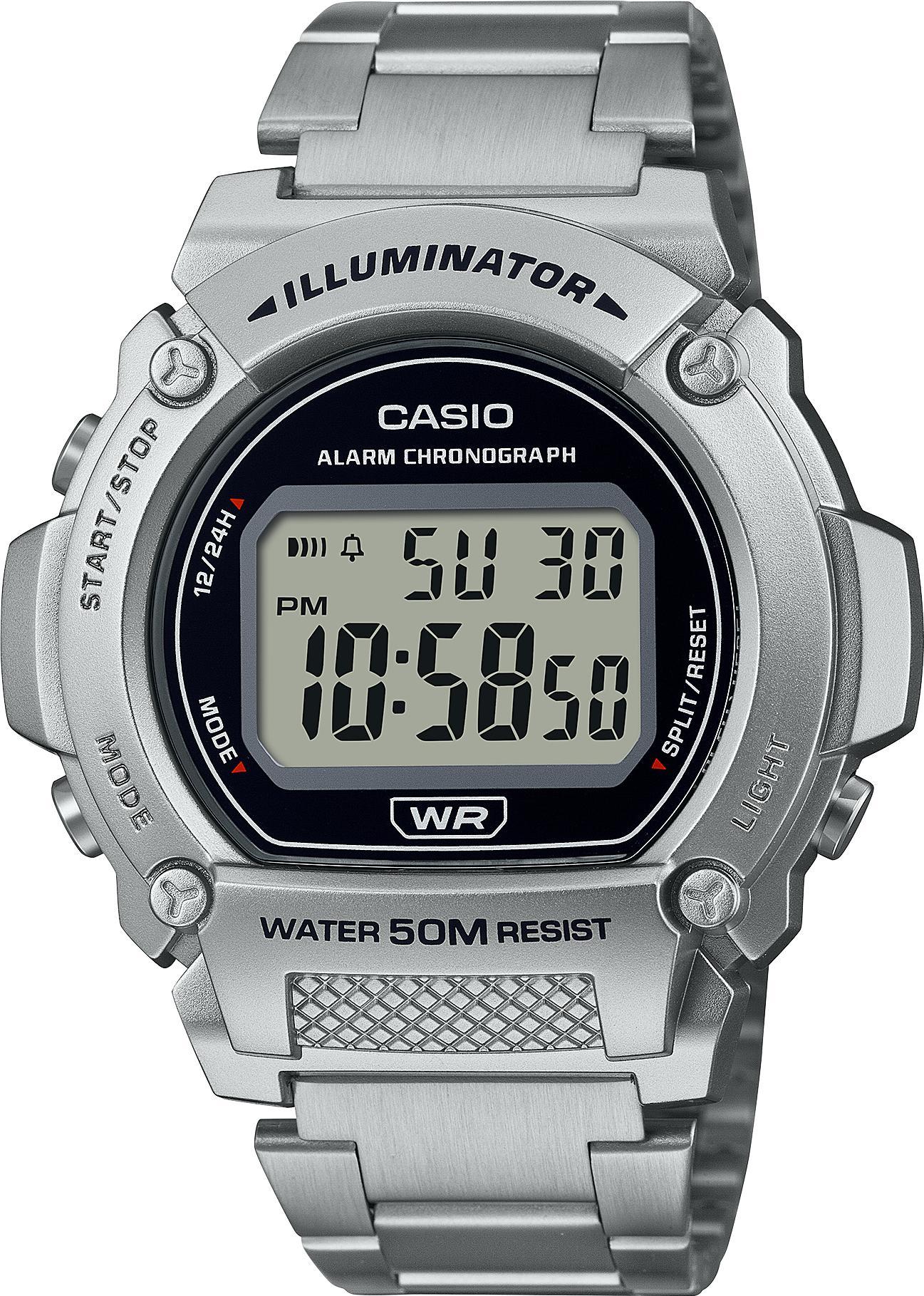 Мужские наручные часы Casio Collection W-219HD-1A. Точный кварцевый механизм с цифровой индикацией. Полимерный корпус надежно защищает часы от механических повреждений. Светодиодная подсветка. На циферблате отображается текущее число, месяц и день недели. Ударопрочная конструкция часов защищает от ударов и вибрации. Функция хронографа. Функция таймера. Таймеры обратного отсчета напомнят Вам о текущих или особенных событиях, издав звуковой сигнал в установленное время. Функция будильника. Аккумулятор обеспечивает часы достаточным питанием приблизительно на 7 лет. После настройки автоматический календарь всегда отображает точную дату. Отображение времени возможно в 12-часовом или 24-часовом формате. Полимерный ремешок. Натуральный полимерный материал является идеальным для изготовления ремешка благодаря своей чрезвычайной прочности и гибкости. Органическое стекло. Часы являются водонепроницаемыми до 5 Бар. Цвет корпуса: Серебристый. Цвет циферблата: Черный. Ширина (с заводной головкой): 48мм. Толщина: 14мм. Гарантия: 2 года. Другие наименования модели: W-219HD-1AVD.
