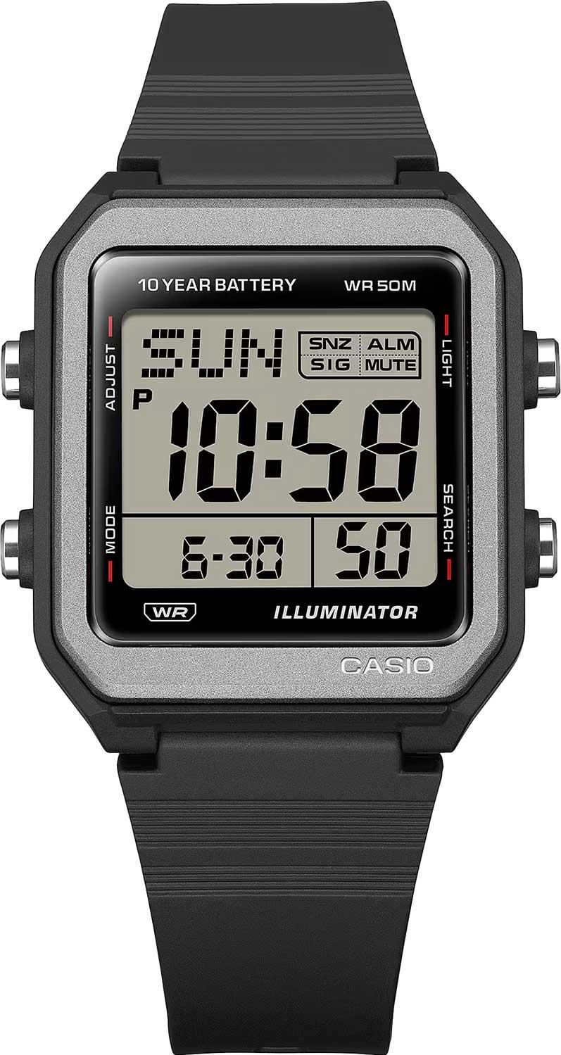 Унисекс часы Casio W-221H-1A. Циферблат подсвечивается светодиодом. Настраиваемое послесвечение 1,5 или 3сек. Цвет подсветки: оранжевый. Световая индикация сигнала. 12-ти и 24-х часовой формат времени. Секундомер с точностью показаний 1/100с и временем измерения 24ч. Секундомер с функцией SPLIT. Таймер обратного отсчета от 1мин до 24ч с автоповтором. Мировое время – 48 городов (29 часовых поясов). Функция включения/отключения летнего времени. Функция включения/отключения звука. 3 будильника, один с функцией Snooze, ежечасный сигнал. Автоматический календарь (до 2099 года). Батарея рассчитана на 10 лет. Ремешок из полимерного материала с классической застежкой. Батарея рассчитана на 10 лет. Ремешок из полимерного материала с классической застежкой.