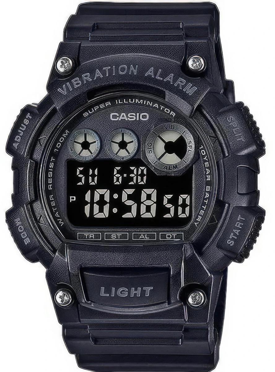Электронные часы снабжены бесшумным вибрационным сигналом, таймером, вторым часовым поясом, секундомером и высокой степенью водозащиты.