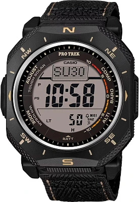 • Электрическая светодиодная подсветка циферблата повышенной яркости. • Встроенный цифровой компас. • Альтиметр: встроенный датчик барометрического давления с возможностью вывода результатов в единицах высоты над уровнем моря. Максимальная высота - 10000 метров над уровнем моря. • Барометр: встроенный датчик давления для измерения барометрического давления. • Встроенный датчик температуры. • Подзарядка аккумулятора от энергии солнечного света. • Отображение текущего времени в основных городах и регионах мира. • Функция отображения времени восхода и захода солнца, на основании введенных данных о широте и долготе в точке местонахождения. • Секундомер с точностью показаний 1/10 сек и максимальным временем измерения - 1000 час. • Таймер обратного осчета. • 5 ежедневных будильников. • Функция повтора сигнала будильника (Snooze). • Индикатор уровня зарядки элемента питания. • Автоматический календарь. • Модуль часов рассчитан на работу при низких температурах. • Минеральное стекло устойчивое к возникновению царапин. • Ремешок из полимерного материала. • Точность хода: не хуже +/-15 секунд в месяц. • Размеры корпуса 54,6 мм (по оси заводной головки) х 52,4 мм (по вертикали) х 14,4 мм (толщина) / 67 грамм.