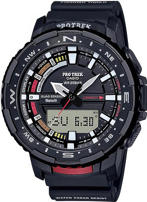 Солнечная батарея / Компас / Термометр / Высотомер (альтиметр) / Барометр / Время восхода/заката / Морозостойкость / Хронограф / Таймер / Ежечасный сигнал / Будильник / Мировое время / 12/24-часовое отображение времени / Автоматический календарь