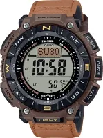 Мужские наручные часы Casio ProTrek PRG-340L-5E. Точный кварцевый механизм с цифровой индикацей. Ремешок изготовлен из кожи. После настройки автоматический календарь всегда отображает точную дату. Для подсветки дисплея используется светодиод, а так же имеет функцию автоматического включения подсветки, если Вы наклоните часы к своему лицу. Специальный датчик измеряет давление воздуха и отображает измеренное значение на экране в виде символа. Это дает возможность заранее определить изменения погоды. Функция будильника. Ежечасный сигнал. Функция хронографа. Встроенный цифровой компас определяет северный магнитный полюс. Отображение текущего времени в основных городах и конкретных областях по всему миру. Солнечная батарейка. Солнечная подзаряжающаяся батарейка обеспечивает питание часов для работы. Функция таймера. Таймеры обратного отсчета напомнят Вам о текущих или особенных событиях, издав звуковой сигнал в установленное время. Термометр. Датчик измеряет температуру окружающего воздуха вокруг часов и отображает ее на экране в градусах. Данные о восходе/закате солнца. После введения географического местоположения, на экране будет отображаться восход и закат солнца для любой установленной даты. Отображение времени возможно в 12-часовом или 24-часовом формате. Высотомер (альтиметр). Встроенный датчик давления определяет изменения в атмосферном давлении и преобразовывает полученные результаты в абсолютную высоту. Прочное, устойчивое к царапинам минеральное стекло защищает часы от повреждений. На циферблате отображается текущее число, месяц и день недели. Часы являются водонепроницаемыми до 10 Бар. Цвет циферблата: Коричневый. Цвет циферблата: Черный. Цвет корпуса: Серый. Светодиодная подсветка. Толщина: 15.1 мм. Гарантия: 2 года.