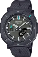 Мужские наручные часы Casio ProTrek PRJ-B001-1E. Точный кварцевый механизм с аналого-цифровой индикацией. Полимерный ремешок. Натуральный полимерный материал является идеальным для изготовления ремешка благодаря своей чрезвычайной прочности и гибкости. После настройки автоматический календарь всегда отображает точную дату. Для подсветки дисплея используется светодиод, а так же имеет функцию автоматического включения подсветки, если Вы наклоните часы к своему лицу. Функция Bluetooth позволяет удобно отображать все метрики с часов на экране смартфона, а также выводить на часы уведомления о входящих звонках, сообщениях и имейлах. Функция будильника. Ежечасный сигнал. Функция хронографа. Индикатор запаса хода. Отображение текущего времени в основных городах и конкретных областях по всему миру. Модель устойчива к низким температурам. Функция перемещения стрелок. Нажатие на кнопку обеспечит перемещение стрелок в такое положение, которое позволит Вам легко считать информацию с маленьких цифровых дисплеев – например, дату или показатели секундомера. Солнечная батарейка. Солнечная подзаряжающаяся батарейка обеспечивает питание часов для работы. Функция таймера. Таймеры обратного отсчета напомнят Вам о текущих или особенных событиях, издав звуковой сигнал в установленное время. Ударопрочная конструкция часов защищает от ударов и вибрации. Отображение времени возможно в 12-часовом или 24-часовом формате. Полимерный ремешок. Натуральный полимерный материал является идеальным для изготовления ремешка благодаря своей чрезвычайной прочности и гибкости. Прочное, устойчивое к царапинам минеральное стекло защищает часы от повреждений. На циферблате отображается текущее число, месяц и день недели. Часы являются водонепроницаемыми до 10 Бар. Цвет циферблата: Черный. Цвет корпуса: Серый. Светодиодная подсветка. Толщина: 14 мм. Гарантия: 2 года.