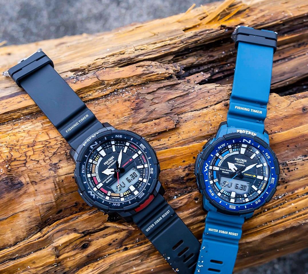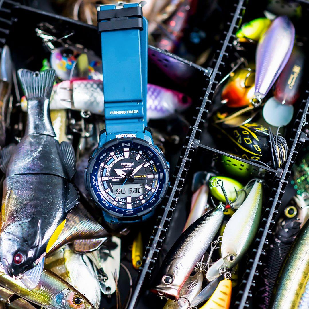 Protrek для активного отдыха. Часы оснащены системой датчиков Quad Sensor: термометр, барометр, высотомер, компас и шагомер и Bluetoth модулем для синхронизации со смартфоном. Но главной особенностью является заточенность на потребности рыбаков!