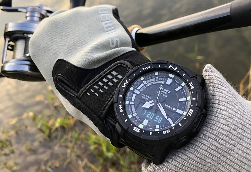 Ударопрочность / Компас / Термометр / Bluetooth / Высотомер (альтиметр) / Барометр / Фазы луны / Хронограф / Таймер / Будильник / Батарейка на 2 года / Мировое время / 12/24-часовое отображение времени / Автоматический календарь