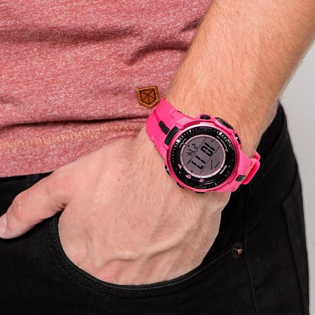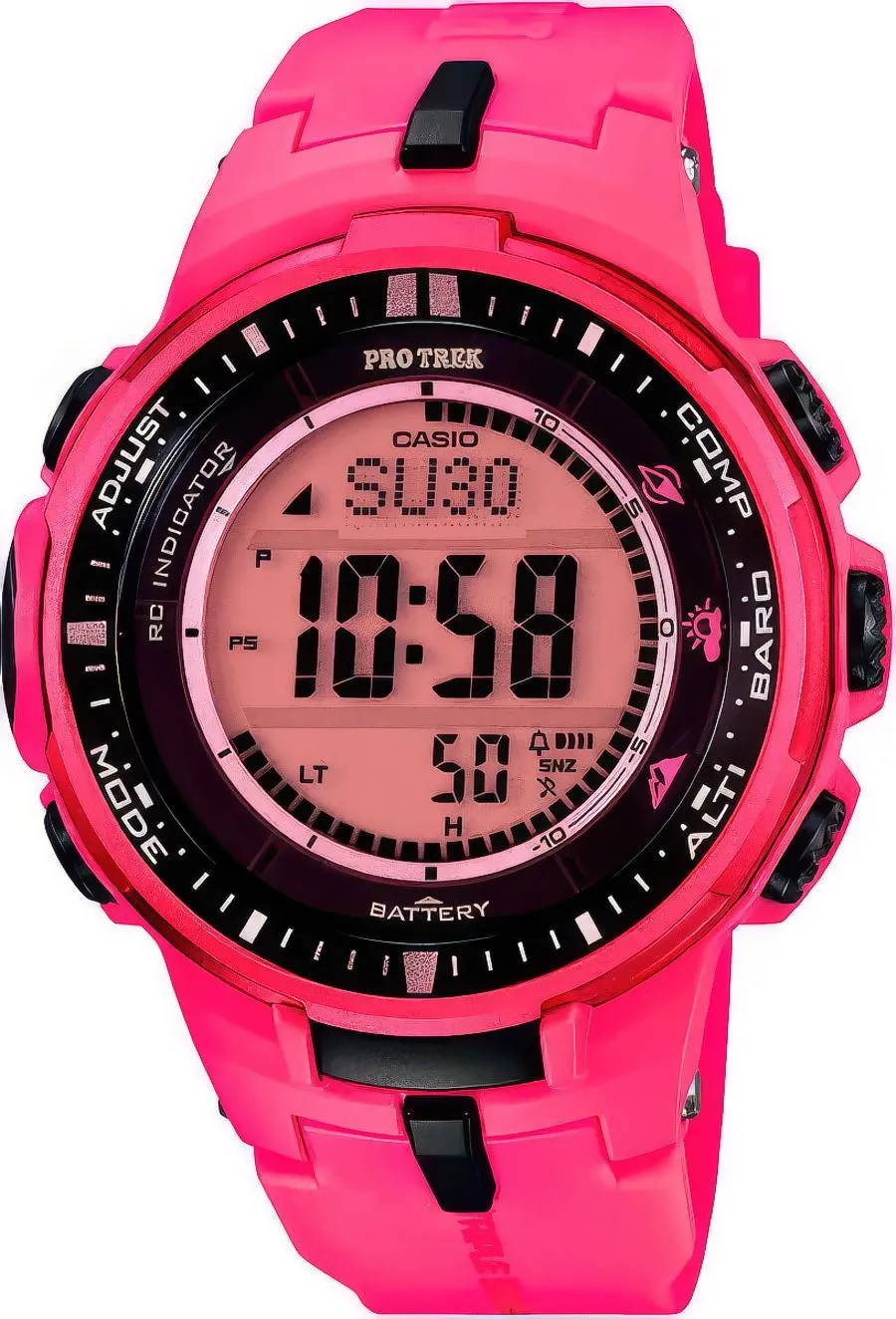 Многофункциональные наручные часы с коррекцией времени по радиосигналу, питанием от солнечной батареи, барометром,альтиметром, датчиком температуры, таймером и будильником на полиуриетановом ремешке.
