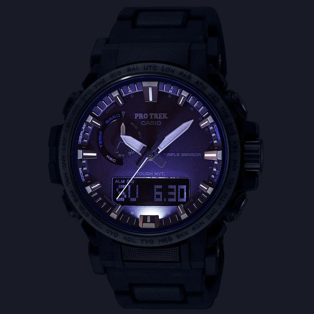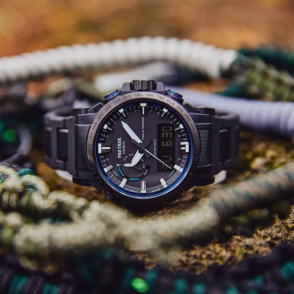 <b>Мужские наручные часы Casio ProTrek PRW-61FC-1E</b>. Точный кварцевый механизм с аналого-цифровой индикацией. Полимерный корпус надежно защищает часы от механических повреждений. На циферблате отображается текущее число, месяц и день недели. Ударопрочная конструкция часов защищает от ударов и вибрации. Солнечная батарейка. Солнечная подзаряжающаяся батарейка обеспечивает питание часов для работы. Радио-синхронизация. Часы будут получать радио-сигнал калибровки, гарантирующий, что они всегда будут показывать точное время. Встроенный цифровой компас определяет северный магнитный полюс. Термометр. Датчик измеряет температуру окружающего воздуха вокруг часов и отображает ее на экране в градусах. Функция хронографа. Функция таймера. Таймеры обратного отсчета напомнят Вам о текущих или особенных событиях, издав звуковой сигнал в установленное время. Функция будильника. Индикатор запаса хода. Отображение текущего времени в основных городах и конкретных областях по всему миру. После настройки автоматический календарь всегда отображает точную дату. Модель оснащена технологией SMART ACCESS, обеспечивающей быстрый и интуитивно понятный доступ ко всем важным функциям часов с помощью электронной заводной головки. Отображение времени возможно в 12-часовом или 24-часовом формате. Полимерный ремешок. Натуральный полимерный материал является идеальным для изготовления ремешка благодаря своей чрезвычайной прочности и гибкости. Сапфировое стекло. Искусственно изготовленное стекло с высокой прочностью и устойчивостью к царапинам. Часы являются водонепроницаемыми до 10 Бар. Цвет корпуса: Серый, черный. Цвет циферблата: Черный. Ширина (с заводной головкой): 47мм. Толщина: 15мм. Гарантия: 2 года.