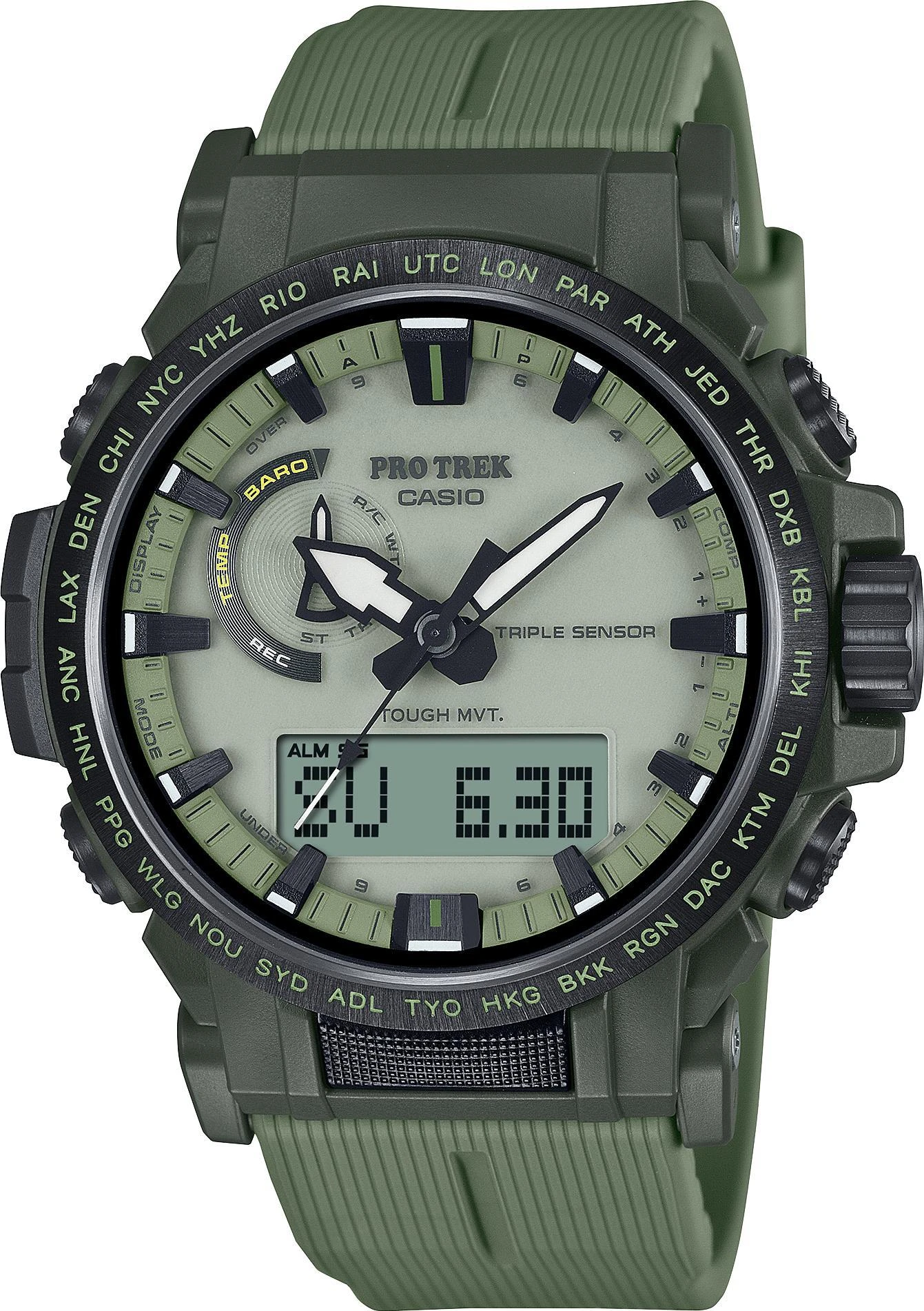 Мужские наручные часы Casio ProTrek PRW-61LD-3E. Точный кварцевый механизмОтображение текущего времени в основных городах и конкретных областях по всему миру. Функция будильника. Солнечная батарейка. Солнечная подзаряжающаяся батарейка обеспечивает питание часов для работы. Функция таймера. Таймеры обратного отсчета напомнят Вам о текущих или особенных событиях, издав звуковой сигнал в установленное время. Ежечасный сигнал. После настройки автоматический календарь всегда отображает точную дату. Отображение времени возможно в 12-часовом или 24-часовом формате. Корпус изготовлен из высококачественной нержавеющей стали 316L с высокими антикоррозийными свойствами. Прочное, устойчивое к царапинам минеральное стекло защищает часы от повреждений. На циферблате отображается текущее число месяца и день недели. Часы являются водонепроницаемыми до 10 Бар. Цвет циферблата: Зеленый. Цвет корпуса: Зеленый. Светодиодная подсветка. Толщина: 14.7 мм. Гарантия: 2 года.