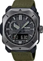 Мужские наручные часы Casio ProTrek PRW-6900YB-3E. Точный кварцевый механизм с аналого-цифровой индикацией. Текстильный ремешок. После настройки автоматический календарь всегда отображает точную дату. Специальный датчик измеряет давление воздуха и отображает измеренное значение на экране в виде символа. Это дает возможность заранее определить изменения погоды. Функция будильника. Ежечасный сигнал. Функция хронографа. Индикатор запаса хода. Встроенный цифровой компас определяет северный магнитный полюс. Отображение текущего времени в основных городах и конкретных областях по всему миру. Функция перемещения стрелок. Нажатие на кнопку обеспечит перемещение стрелок в такое положение, которое позволит Вам легко считать информацию с маленьких цифровых дисплеев – например, дату или показатели секундомера. Радио-синхронизация. Часы будут получать радио-сигнал калибровки, гарантирующий, что они всегда будут показывать точное время. Функция таймера. Таймеры обратного отсчета напомнят Вам о текущих или особенных событиях, издав звуковой сигнал в установленное время. Термометр. Датчик измеряет температуру окружающего воздуха вокруг часов и отображает ее на экране в градусах. Отображение времени возможно в 12-часовом или 24-часовом формате. Высотомер (альтиметр). Встроенный датчик давления определяет изменения в атмосферном давлении и преобразовывает полученные результаты в абсолютную высоту. Браслет из нержавеющей стали. Прочное, устойчивое к царапинам минеральное стекло защищает часы от повреждений. На циферблате отображается текущее число, месяц и день недели. Часы являются водонепроницаемыми до 10 Бар. Цвет циферблата: Черный. Цвет корпуса: Черный. Светодиодная подсветка. Высота (с ушками): 50 мм. Толщина: 15 мм. Гарантия: 2 года.