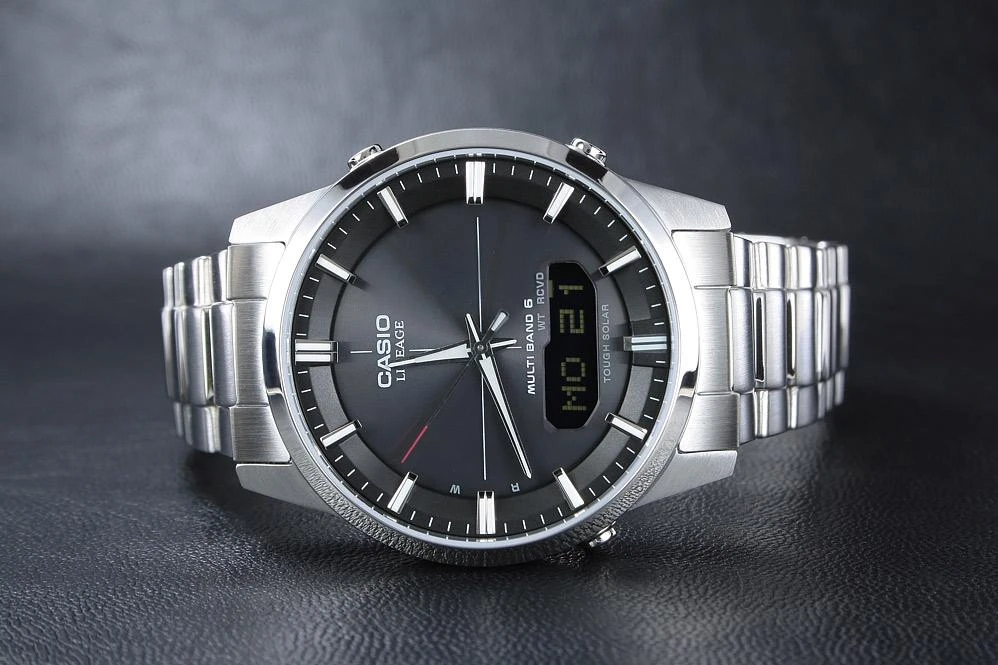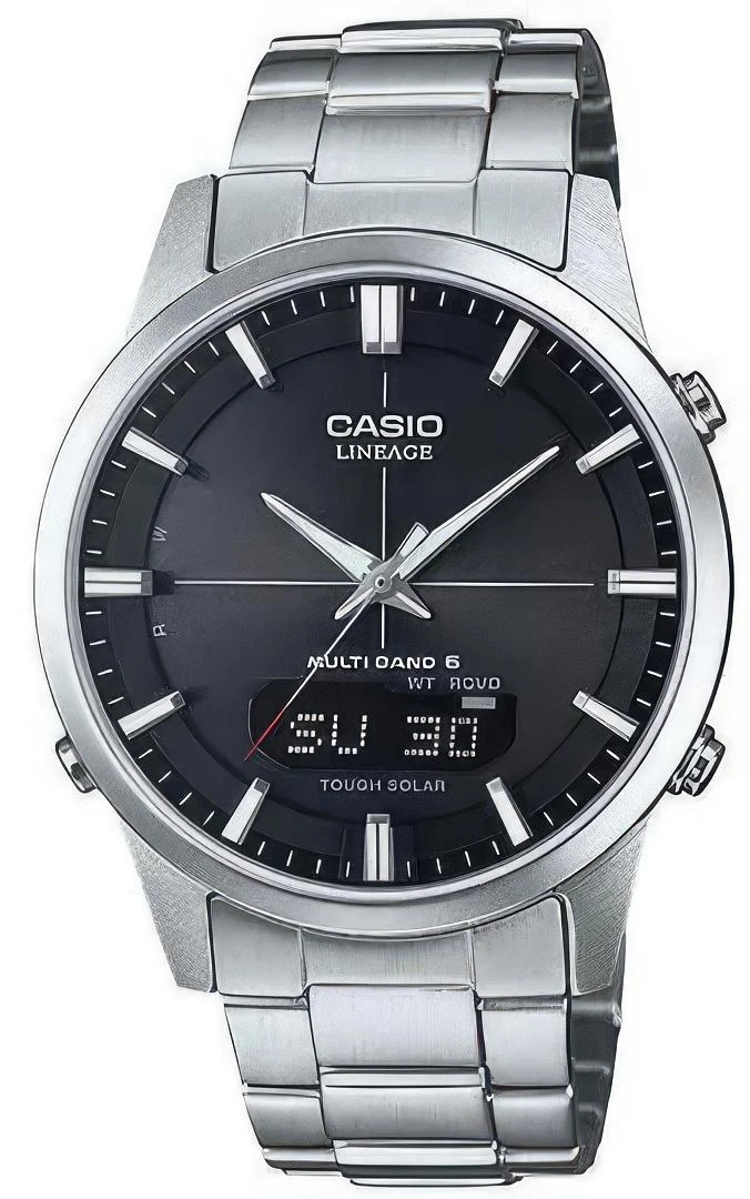 Японские наручные часы предназначенные для мужчин. Универсальный дизайн. Круглый корпус из нерж.стали. Сапфировое стекло. Многофункциональный механизм цифроаналоговой индикацией и солнечной батареей, подстройка времени по радиосигналу, мировое время.