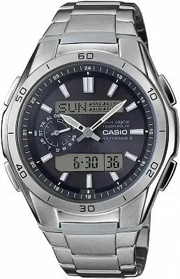 Многофункциональные мужские часы с двойной цифроаналоговой индикацией. Автоматическая подстройка времени по радиосигналу, транслируемому от суперточных эталонных атомных часов. Работа от солнечных батарей. Яркая светодиодная подсветка.