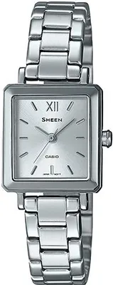 <b>Женские кварцевые часы из серии Sheen. Прямоугольный ультратонкий стальной корпус. Серебристый циферблат. Сапфировое стекло. Водозащита 50 м. Браслет из нержавеющей стали. Тройная раскладывающаяся застежка, расстегиваемая одним касанием.</b><br><br>• Японский кварцевый механизм.<br>• Центральные часовая, минутная и секундная стрелки.<br>• Точность хода не хуже от -10 до +20 сек. в месяц.<br>• Сапфировое стекло устойчивое к царапанию.<br>• Антибликовое покрытие внутренней поверхности стекла.<br>• Корпус из стального сплава 316L с высокими антикоррозийными свойствами.<br>• Водозащита до 5 АТМ.<br>• Регулируемый по длине браслет из нержавеющей стали.<br>• Надежный браслетный замок с тройным сгибом.