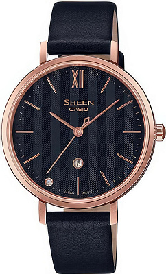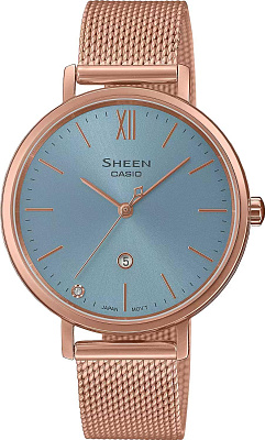 Женские наручные часы Casio Sheen SHE-4539CM-4A. Точный кварцевый механизм с аналоговой индикацией. Корпус изготовлен из высококачественной нержавеющей стали 316L с высокими антикоррозийными свойствами. На циферблате отображается текущее число месяца. Аккумулятор обеспечивает часы достаточным питанием приблизительно на 2 года. Браслет из нержавеющей стали. Сапфировое стекло. Искусственно изготовленное стекло с высокой прочностью и устойчивостью к царапинам. Часы являются водонепроницаемыми до 5 Бар. Цвет корпуса: Розовое золото. Цвет циферблата: Золотистый. Ширина (с заводной головкой): 40мм. Толщина: 6мм. Гарантия: 2 года. Другие наименования модели: SHE-4539CM-4AUER.