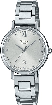 Женские наручные часы Casio Sheen SHE-4540D-7A. Точный кварцевый механизм с аналоговой индикацией. Браслет из нержавеющей стали. Аккумулятор обеспечивает часы достаточным питанием приблизительно на 2 года. Браслет из нержавеющей стали. Сапфировое стекло. Искусственно изготовленное стекло с высокой прочностью и устойчивостью к царапинам. На циферблате отображается текущее число месяца. Часы являются водонепроницаемыми до 5 Бар. Цвет циферблата: Серебристый. Цвет корпуса: Серебристый. Высота (с ушками): 35 мм. Толщина: 6 мм. Гарантия: 2 года.