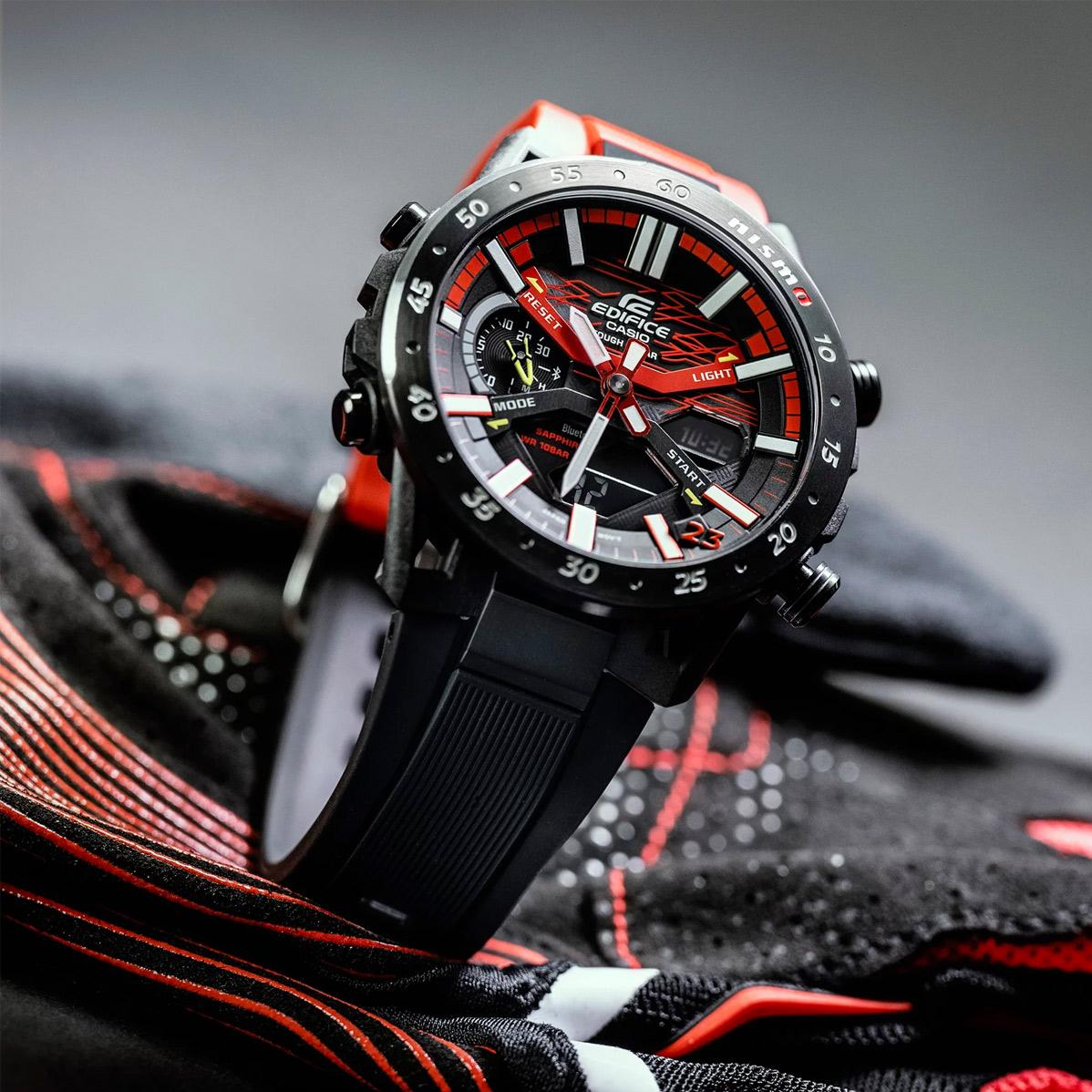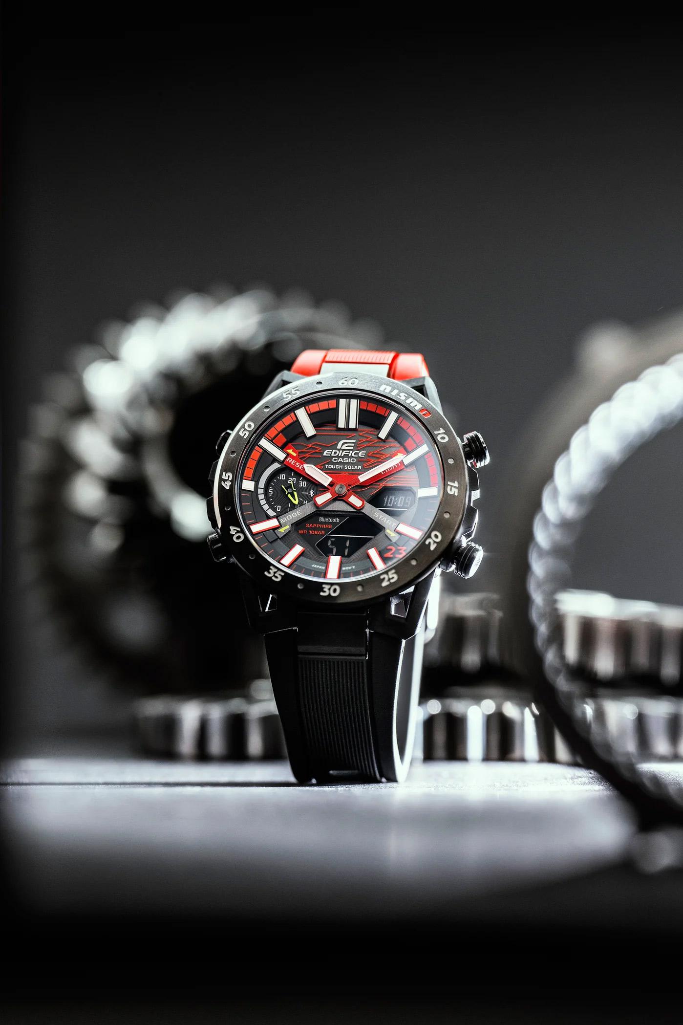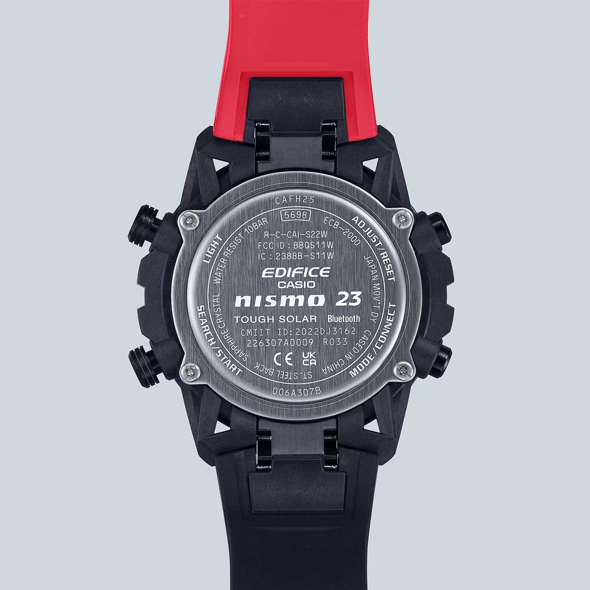 Мужские наручные часы Casio Edifice ECB-2000NIS-1A. Точный кварцевый механизм с аналоговой индикацией. Корпус изготовлен из высококачественной нержавеющей стали 316L с высокими антикоррозийными свойствами. На стрелки и отметки нанесен светонакопительный состав, благодаря этому считывать информацию с циферблата возможно и в темноте. На циферблате отображается текущее число, месяц и день недели. Ударопрочная конструкция часов защищает от ударов и вибрации. Солнечная батарейка. Солнечная подзаряжающаяся батарейка обеспечивает питание часов для работы. Функция Bluetooth позволяет удобно отображать все метрики с часов на экране смартфона, а также выводить на часы уведомления о входящих звонках, сообщениях и имейлах. Функция хронографа. Функция таймера. Таймеры обратного отсчета напомнят Вам о текущих или особенных событиях, издав звуковой сигнал в установленное время. Функция будильника. Индикатор запаса хода. Отображение текущего времени в основных городах и конкретных областях по всему миру. После настройки автоматический календарь всегда отображает точную дату. Отображение времени возможно в 12-часовом или 24-часовом формате. Полимерный ремешок. Натуральный полимерный материал является идеальным для изготовления ремешка благодаря своей чрезвычайной прочности и гибкости. Сапфировое стекло. Искусственно изготовленное стекло с высокой прочностью и устойчивостью к царапинам. Часы являются водонепроницаемыми до 10 Бар. Цвет корпуса: Черный. Цвет циферблата: Красный. Ширина (с заводной головкой): 51мм. Толщина: 11мм. Гарантия: 2 года.