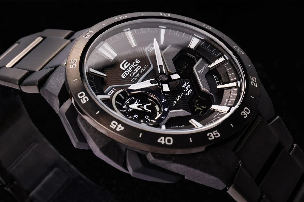 Инновационная структура, сочетающая сверхлегкое и прочное углеродное волокно с элементами из нержавеющей стали. Такое решение обеспечивает исключительную устойчивость к деформациям, защищает механизм от ударов и придает часам премиальный внешний вид.
