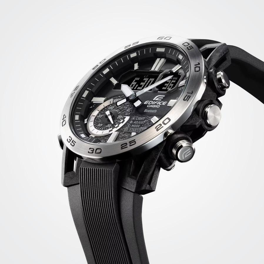 Мужские наручные часы Casio Edifice ECB-40P-1A. Точный кварцевый механизм с аналого-цифровой индикацией. Корпус изготовлен из высококачественной нержавеющей стали 316L с высокими антикоррозийными свойствами. Светодиодная подсветка. На циферблате отображается текущее число, месяц и день недели. Функция хронографа. Функция таймера. Таймеры обратного отсчета напомнят Вам о текущих или особенных событиях, издав звуковой сигнал в установленное время. Для подсветки дисплея используется светодиод, а так же имеет функцию автоматического включения подсветки, если Вы наклоните часы к своему лицу. Функция будильника. Аккумулятор обеспечивает часы достаточным питанием приблизительно на 2 года. Отображение текущего времени в основных городах и конкретных областях по всему миру. После настройки автоматический календарь всегда отображает точную дату. Отображение времени возможно в 12-часовом или 24-часовом формате. Полимерный ремешок. Натуральный полимерный материал является идеальным для изготовления ремешка благодаря своей чрезвычайной прочности и гибкости. Прочное, устойчивое к царапинам минеральное стекло защищает часы от повреждений. Часы являются водонепроницаемыми до 10 Бар. Цвет корпуса: Серебристый. Цвет циферблата: Черный. Ширина (с заводной головкой): 52мм. Толщина: 13мм. Гарантия: 2 года. Другие наименования модели: ECB-40P-1AEF, ECB-40P-1ADF.