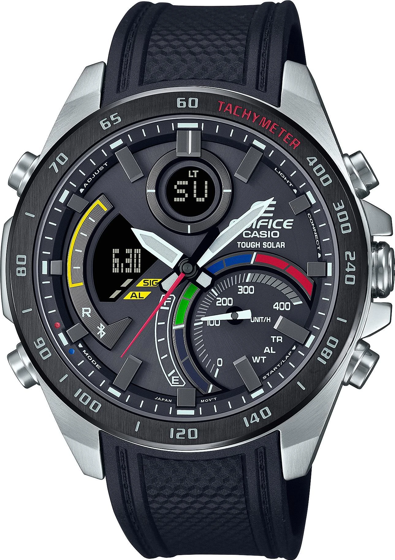 Мужские наручные часы Casio Edifice ECB-900MP-1A. Точный кварцевый механизм с аналоговой индикацией. Корпус изготовлен из высококачественной нержавеющей стали 316L с высокими антикоррозийными свойствами. На стрелки и отметки нанесен светонакопительный состав, благодаря этому считывать информацию с циферблата возможно и в темноте. На циферблате отображается текущее число, месяц и день недели. Ударопрочная конструкция часов защищает от ударов и вибрации. Солнечная батарейка. Солнечная подзаряжающаяся батарейка обеспечивает питание часов для работы. Функция Bluetooth позволяет удобно отображать все метрики с часов на экране смартфона, а также выводить на часы уведомления о входящих звонках, сообщениях и имейлах. Функция хронографа. Функция таймера. Таймеры обратного отсчета напомнят Вам о текущих или особенных событиях, издав звуковой сигнал в установленное время. Функция будильника. После настройки автоматический календарь всегда отображает точную дату. Отображение времени возможно в 12-часовом или 24-часовом формате. Полимерный ремешок. Натуральный полимерный материал является идеальным для изготовления ремешка благодаря своей чрезвычайной прочности и гибкости. Прочное, устойчивое к царапинам минеральное стекло защищает часы от повреждений. Часы являются водонепроницаемыми до 10 Бар. Цвет корпуса: Серый. Цвет циферблата: Черный. Ширина (с заводной головкой): 51мм. Толщина: 14мм. Гарантия: 2 года. Другие наименования модели: ECB-900MP-1AEF, ECB-900MP-1ADF.