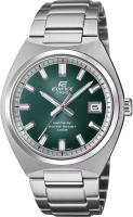 Мужские наручные часы Casio Edifice EFB-109D-3A. Точный кварцевый механизм с аналоговой индикацией. В отличие от механических часов, не требуют завода и работают от батареи, показывая отклонение всего несколько секунд в месяц. На стрелки и отметки нанесен светонакопительный состав, благодаря этому считывать информацию с циферблата возможно и в темноте. Браслет из нержавеющей стали обладает высокой прочностью и износостойкостью, обеспечивая долговечность даже при активной эксплуатации. Материал устойчив к коррозии и сохраняет свой внешний вид надолго. Аккумулятор обеспечивает часы достаточным питанием приблизительно на 3 года. Корпус изготовлен из высококачественной нержавеющей стали 316L с высокими антикоррозийными свойствами. Сапфировое стекло. Искусственно изготовленное стекло с высокой прочностью и устойчивостью к царапинам. Часы являются водонепроницаемыми до 10 Бар. Цвет корпуса: Серебристый. Цвет циферблата: Зеленый. Высота (с ушками): 43.5 мм. Толщина: 9.2 мм. Гарантия: 2 года.