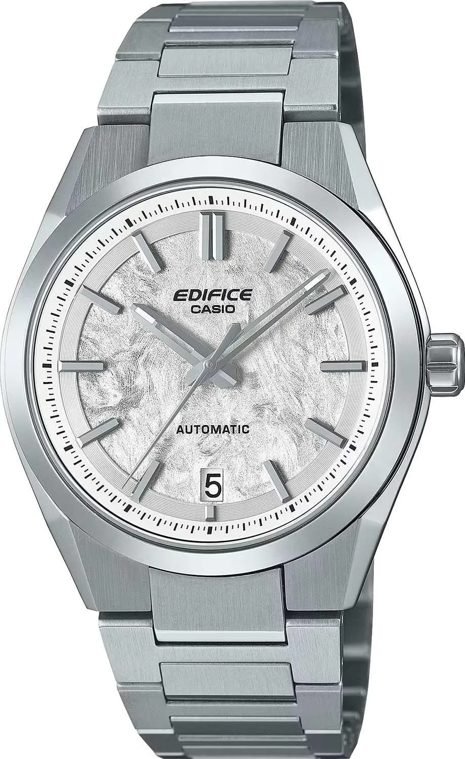 Мужские наручные часы Casio Edifice EFK-100D-7A. Автоматические с ручным подзаводом. Пружина механизма заводится автоматически благодаря естественным движениям владельца в процессе ежедневной носки часов. Также есть возможность ручного завода. Браслет из нержавеющей стали обладает высокой прочностью и износостойкостью, обеспечивая долговечность даже при активной эксплуатации. Материал устойчив к коррозии и сохраняет свой внешний вид надолго. Корпус изготовлен из высококачественной нержавеющей стали 316L с высокими антикоррозийными свойствами. Сапфировое стекло. Искусственно изготовленное стекло с высокой прочностью и устойчивостью к царапинам. Часы являются водонепроницаемыми до 10 Бар. Цвет корпуса: Серебристый. Цвет циферблата: Белый. Высота (с ушками): 43.5 мм. Толщина: 12.5 мм. Гарантия: 2 года.