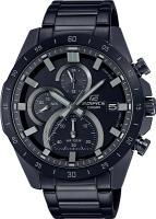 Мужские кварцевые часы с функцией секундомера из серии Edifice. Корпус из нержавеющей стали с покрытием. Черный циферблат. Минеральное стекло. Браслет из нержавеющей стали. Браслетный замок с предохранительной защелкой. Водозащита 100 м.
