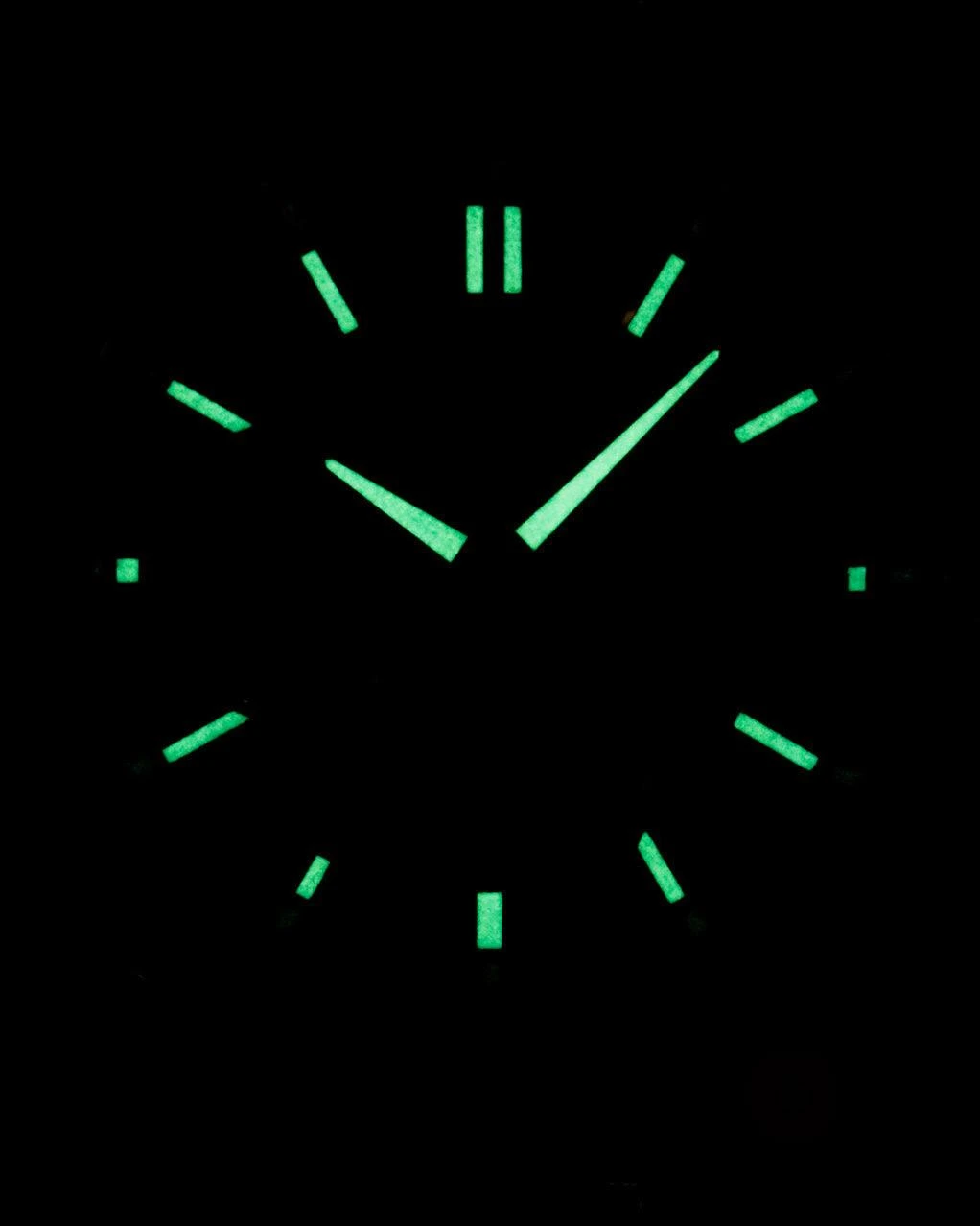 • Необритовая люминесцентная подсветка на стрелках и индексах часа.