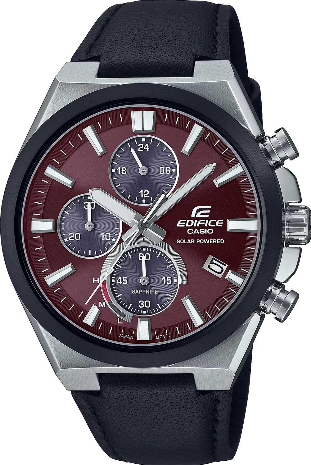 Мужские наручные часы Casio Edifice EFS-S630BL-5A. Точный кварцевый механизм с аналоговой индикацией. Ремешок изготовлен из кожи. Функция хронографа. Солнечная батарейка. Солнечная подзаряжающаяся батарейка обеспечивает питание часов для работы. Отображение времени возможно в 12-часовом или 24-часовом формате. Браслет из нержавеющей стали. Сапфировое стекло. Искусственно изготовленное стекло с высокой прочностью и устойчивостью к царапинам. На циферблате отображается текущее число месяца. Часы являются водонепроницаемыми до 10 Бар. Цвет циферблата: Черный. Цвет корпуса: Коричневый. На стрелки и отметки нанесен светонакопительный состав, благодаря этому считывать информацию с циферблата возможно и в темноте. Высота (с ушками): 48 мм. Толщина: 12 мм. Гарантия: 2 года.