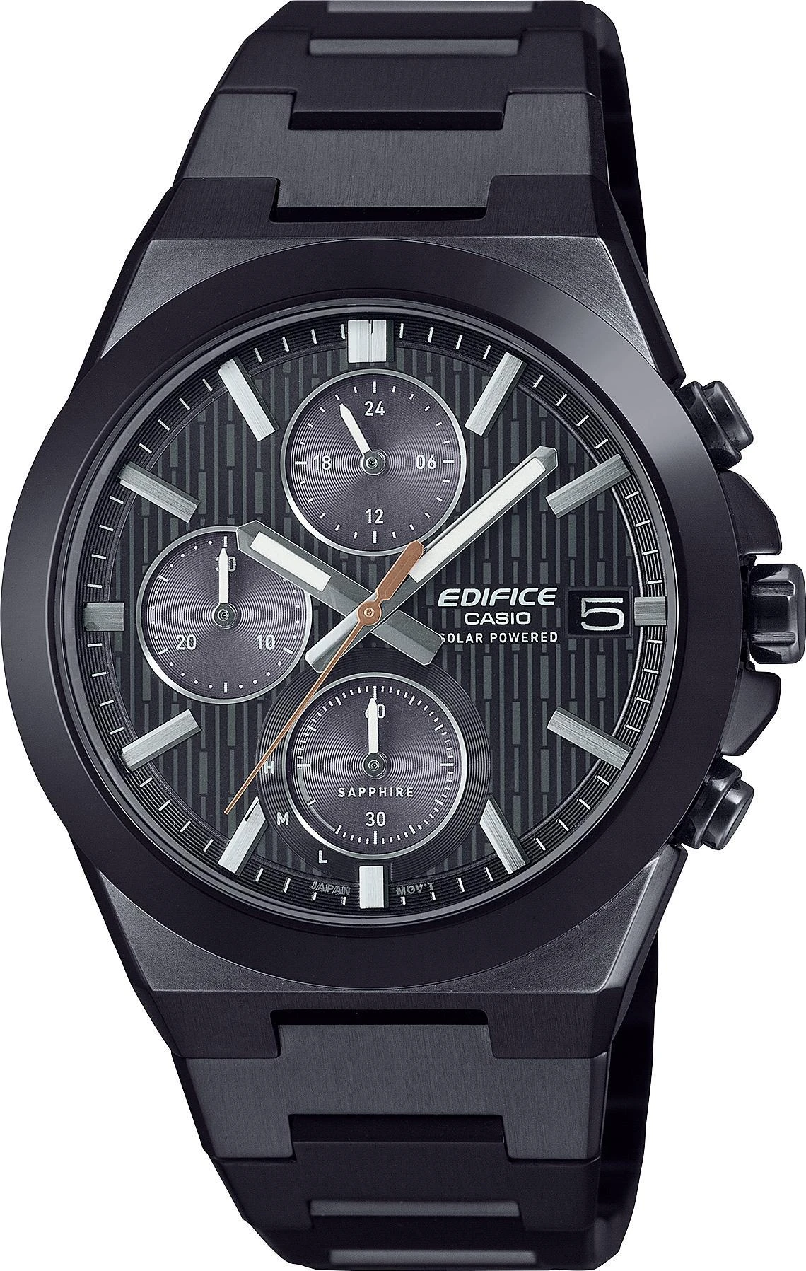 Представляем первые часы EDIFICE с керамическим безелем, созданные с изяществом и долговечностью. Тщательно отполированный керамический безель с его тонкими и изысканными оттенками напоминает великолепную блестящую текстуру элитного спорткара и обеспечивает даже большую устойчивость к царапинам, чем нержавеющая сталь, обеспечивая долговечность и долговечность. Плоский корпус и браслет из нержавеющей стали отличаются тщательной зеркальной и волосяной полировкой, а циферблат украшен изысканным узором, подчеркивающим элегантность общего дизайна. Корпус меньшего размера, диаметром 39,5 мм, сочетает в себе стиль и практичность. Сапфировое стекло обеспечивает хорошую видимость и устойчивость к царапинам. Часы работают на солнечной энергии для длительного срока службы аккумулятора, оснащены секундомером и водонепроницаемы до 100 метров.