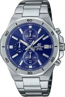 Мужские наручные часы Casio Edifice EFV-640D-2A. Точный кварцевый механизм с аналоговой индикацией. Корпус изготовлен из высококачественной нержавеющей стали 316L с высокими антикоррозийными свойствами. На стрелки и отметки нанесен светонакопительный состав, благодаря этому считывать информацию с циферблата возможно и в темноте. На циферблате отображается текущее число месяца. Функция хронографа. Аккумулятор обеспечивает часы достаточным питанием приблизительно на 2 года. Браслет из нержавеющей стали. Прочное, устойчивое к царапинам минеральное стекло защищает часы от повреждений. Часы являются водонепроницаемыми до 10 Бар. Цвет корпуса: Серебристый. Цвет циферблата: Синий. Ширина (с заводной головкой): 47мм. Толщина: 11мм. Гарантия: 2 года. Другие наименования модели: EFV-640D-2AVUDF.