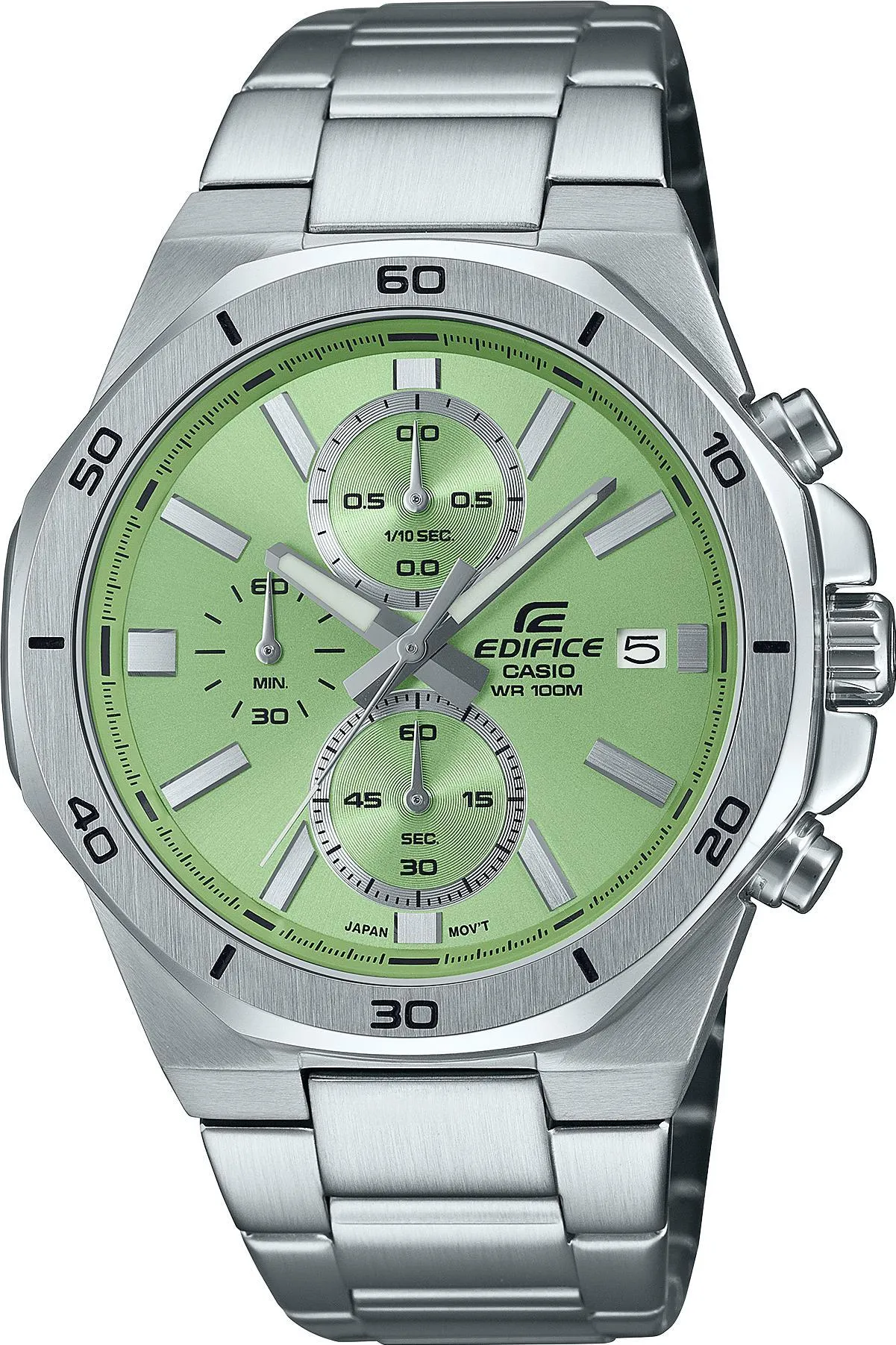 В этих часах от Casio гармонично сочетается функциональность и стильный дизайн. Edifice. Необритовое светонакопительное покрытие обеспечивает длительное послесвечение в темноте даже после кратковременного нахождения на свету. Часы-хронограф с секундомером с точностью показаний 1/10с и временем измерения 1ч. Циферблат с метками в виде штрихов выполнен по технологии Sunray (солнечные лучи). Окошко даты находится в положении 3 часа. Заводная головка с защитой. Батарея рассчитана на 2 года. Браслет с тройной раскладывающейся застежкой, расстегиваемой одним касанием.