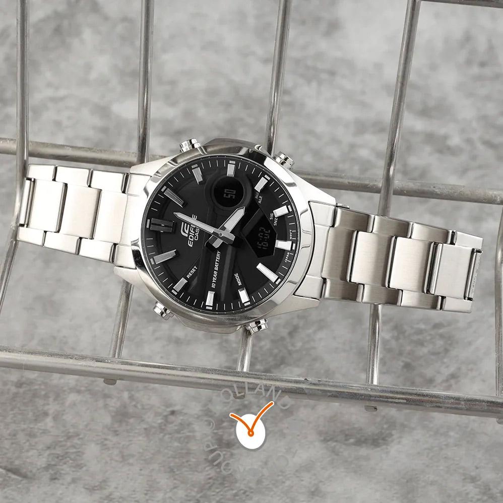 Мужские наручные часы Casio Edifice EFV-C120D-1A. Точный кварцевый механизм с аналого-цифровой индикацией. Корпус изготовлен из высококачественной нержавеющей стали 316L с высокими антикоррозийными свойствами. Светодиодная подсветка. На циферблате отображается текущее число, месяц и день недели. Мировое время. Будильник. Хронограф. Таймер. Записная книжка Автоматический календарь. 12/24-часовое отображение времени. Браслет из нержавеющей стали. Прочное, устойчивое к царапинам минеральное стекло защищает часы от повреждений. Часы являются водонепроницаемыми до 10 Бар. Цвет корпуса: Серебристый. Цвет циферблата: Черный. Ширина (с заводной головкой): 46мм. Толщина: 14мм. Гарантия: 2 года. Другие наименования модели: EFV-C120D-1ADF.