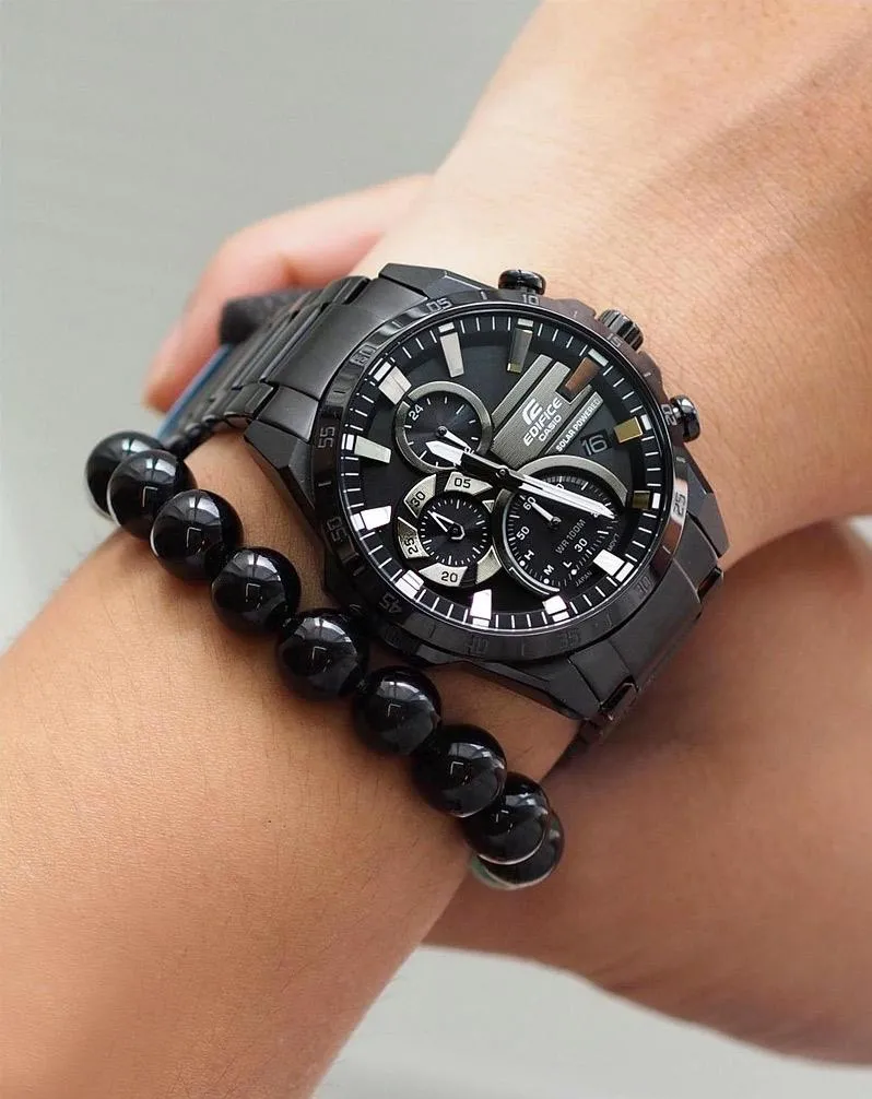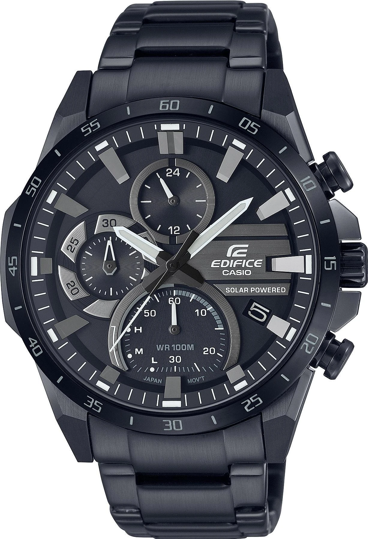 Мужские наручные часы Casio Edifice EQS-940DC-1A. Точный кварцевый механизм с аналоговой индикацией. Корпус изготовлен из высококачественной нержавеющей стали 316L с высокими антикоррозийными свойствами. На стрелки и отметки нанесен светонакопительный состав, благодаря этому считывать информацию с циферблата возможно и в темноте. На циферблате отображается текущее число месяца. Ударопрочная конструкция часов защищает от ударов и вибрации. Солнечная батарейка. Солнечная подзаряжающаяся батарейка обеспечивает питание часов для работы. Функция хронографа. Индикатор запаса хода. Браслет из нержавеющей стали. Прочное, устойчивое к царапинам минеральное стекло защищает часы от повреждений. Часы являются водонепроницаемыми до 10 Бар. Цвет корпуса: Черный. Цвет циферблата: Черный. Ширина (с заводной головкой): 50мм. Толщина: 12мм. Гарантия: 2 года. Другие наименования модели: EQS-940DC-1AVUDF.