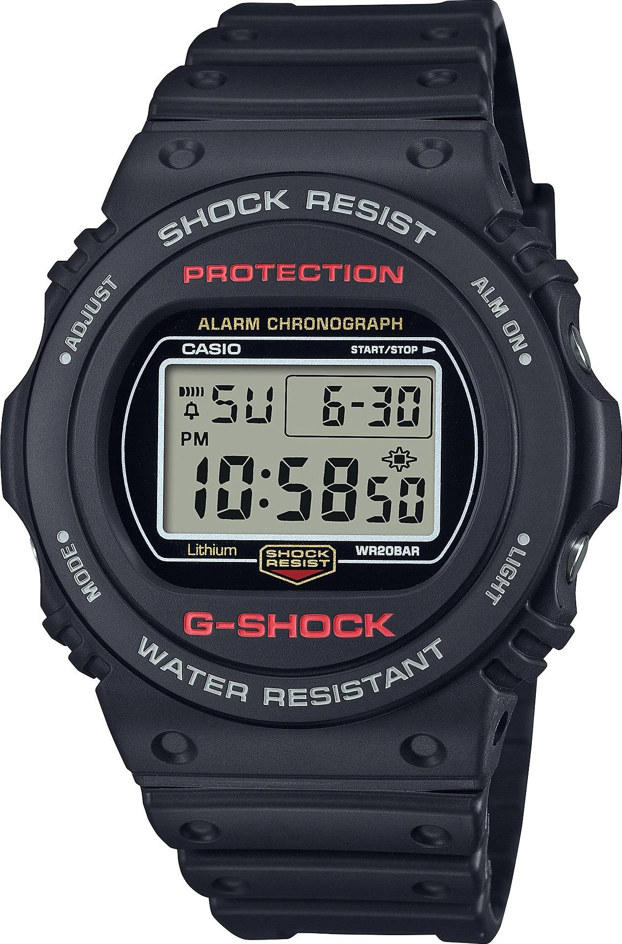 Ударопрочные часы совмещают все преимуществасовременных ударопрочных моделей с дизайном первых G-Shock. Минеральное стекло. Водозащита 20АТМ. Многофункциональный механизм с цифровой индикацией на жидкокристаллическом дисплее.