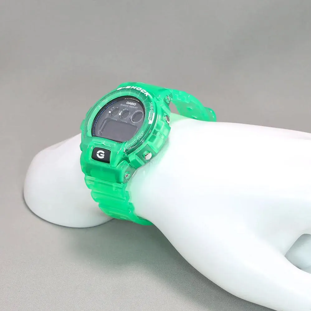 <b>Мужские наручные часы Casio G-Shock DW-6900JT-3E</b>. Точный кварцевый механизм с цифровой индикацией. Полимерный корпус надежно защищает часы от механических повреждений. Светодиодная подсветка. На циферблате отображается текущее число, месяц и день недели. Ударопрочная конструкция часов защищает от ударов и вибрации. Функция хронографа. Функция таймера. Таймеры обратного отсчета напомнят Вам о текущих или особенных событиях, издав звуковой сигнал в установленное время. Для подсветки дисплея используется светодиод, а так же имеет функцию автоматического включения подсветки, если Вы наклоните часы к своему лицу. Функция будильника. Аккумулятор обеспечивает часы достаточным питанием приблизительно на 5 лет. После настройки автоматический календарь всегда отображает точную дату. Отображение времени возможно в 12-часовом или 24-часовом формате. Полимерный ремешок. Натуральный полимерный материал является идеальным для изготовления ремешка благодаря своей чрезвычайной прочности и гибкости. Прочное, устойчивое к царапинам минеральное стекло защищает часы от повреждений. Часы являются водонепроницаемыми до 20 Бар. Цвет корпуса: Зеленый. Цвет циферблата: Черный. Ширина (с заводной головкой): 53мм. Толщина: 19мм. Гарантия: 2 года.