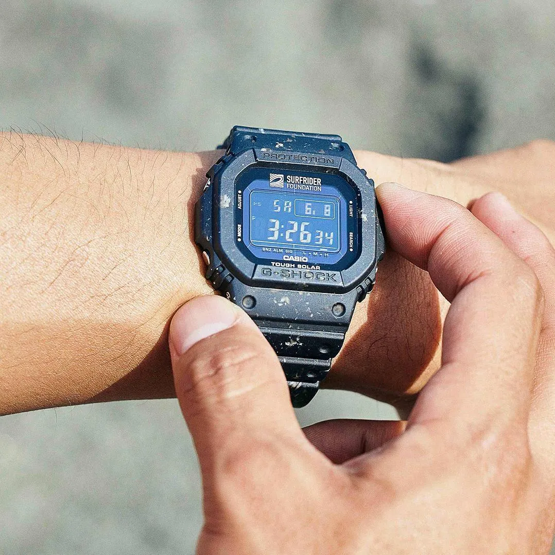 Мужские наручные часы Casio G-Shock G-5600SRF-1E. Точный кварцевый механизм с цифровой индикацей. Полимерный ремешок. Натуральный полимерный материал является идеальным для изготовления ремешка благодаря своей чрезвычайной прочности и гибкости. После настройки автоматический календарь всегда отображает точную дату. Для подсветки дисплея используется светодиод, а так же имеет функцию автоматического включения подсветки, если Вы наклоните часы к своему лицу. Функция будильника. Ежечасный сигнал. Функция хронографа. Отображение текущего времени в основных городах и конкретных областях по всему миру. Солнечная батарейка. Солнечная подзаряжающаяся батарейка обеспечивает питание часов для работы. Функция таймера. Таймеры обратного отсчета напомнят Вам о текущих или особенных событиях, издав звуковой сигнал в установленное время. Ударопрочная конструкция часов защищает от ударов и вибрации. Отображение времени возможно в 12-часовом или 24-часовом формате. Полимерный ремешок. Натуральный полимерный материал является идеальным для изготовления ремешка благодаря своей чрезвычайной прочности и гибкости. Прочное, устойчивое к царапинам минеральное стекло защищает часы от повреждений. На циферблате отображается текущее число, месяц и день недели. Часы являются водонепроницаемыми до 20 Бар. Цвет циферблата: Черный. Цвет корпуса: Черный. Светодиодная подсветка. Высота (с ушками): 47 мм. Толщина: 13 мм. Гарантия: 2 года.