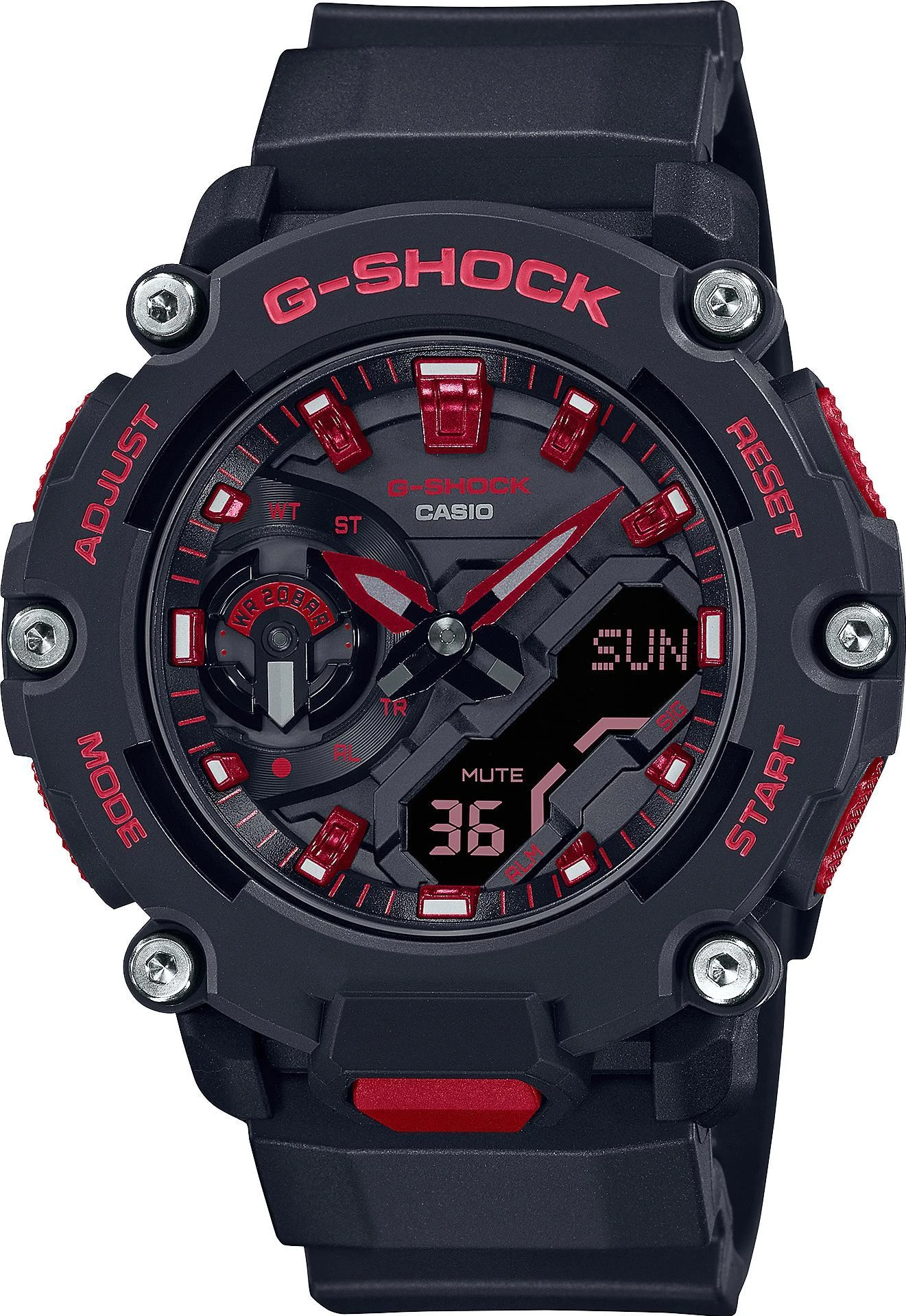 Мужские наручные часы Casio G-Shock GA-2200BNR-1A. Точный кварцевый механизм с аналого-цифровой индикацией. Полимерный ремешок. Натуральный полимерный материал является идеальным для изготовления ремешка благодаря своей чрезвычайной прочности и гибкости. Браслет из нержавеющей стали. Отображение текущего времени в основных городах и конкретных областях по всему миру. Ударопрочная конструкция часов защищает от ударов и вибрации. Функция будильника. Функция хронографа. После настройки автоматический календарь всегда отображает точную дату. Отображение времени возможно в 12-часовом или 24-часовом формате. Аккумулятор обеспечивает часы достаточным питанием приблизительно на 3 года. Браслет из нержавеющей стали. Прочное, устойчивое к царапинам минеральное стекло защищает часы от повреждений. На циферблате отображается текущее число, месяц и день недели. Часы являются водонепроницаемыми до 20 Бар. Цвет циферблата: Черный. Цвет корпуса: Черный. Светодиодная подсветка. На стрелки и отметки нанесен светонакопительный состав, благодаря этому считывать информацию с циферблата возможно и в темноте. Толщина: 13 мм. Гарантия: 2 года.