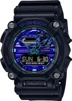 Компания CASIO представляет обновленное цветовое решение индустриальной модели GA-900 из коллекции "VIRTUAL BLUE". Сочетание черно-матового цвета и неоновых оттенков синего создает узнаваемый образ виртуальный реальности. Особенностью модели является брутальный индустриальный дизайн десятиуголный корпус, словно строительная гайка, острые стрелки на циферблате, масивные винты на корпусе, антискользящее ребристое покрытие кнопок и ремешка.