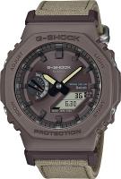 Мужские наручные часы Casio G-Shock GA-B2100CT-5A. Точный кварцевый механизм с аналого-цифровой индикацией. Корпус карбоновый. Карбон отличается антикоррозийностью, гипоаллергенностью и легкостью. Светодиодная подсветка. На циферблате отображается текущее число, месяц и день недели. Ударопрочная конструкция часов защищает от ударов и вибрации. Солнечная батарейка. Солнечная подзаряжающаяся батарейка обеспечивает питание часов для работы. Радио-синхронизация. Часы будут получать радио-сигнал калибровки, гарантирующий, что они всегда будут показывать точное время. Функция Bluetooth позволяет удобно отображать все метрики с часов на экране смартфона, а также выводить на часы уведомления о входящих звонках, сообщениях и имейлах. Функция хронографа. Функция таймера. Таймеры обратного отсчета напомнят Вам о текущих или особенных событиях, издав звуковой сигнал в установленное время. Для подсветки дисплея используется светодиод, а так же имеет функцию автоматического включения подсветки, если Вы наклоните часы к своему лицу. Ежечасный сигнал. Функция будильника. Функция перемещения стрелок. Нажатие на кнопку обеспечит перемещение стрелок в такое положение, которое позволит Вам легко считать информацию с маленьких цифровых дисплеев – например, дату или показатели секундомера. Отображение текущего времени в основных городах и конкретных областях по всему миру. После настройки автоматический календарь всегда отображает точную дату. Автоматическая корректировака времени. Отображение времени возможно в 12-часовом или 24-часовом формате. Текстильный ремешок. Прочное, устойчивое к царапинам минеральное стекло защищает часы от повреждений. Часы являются водонепроницаемыми до 20 Бар. Цвет корпуса: Коричневый. Цвет циферблата: Коричневый. Ширина (с заводной головкой): 45мм. Толщина: 12мм. Гарантия: 2 года.