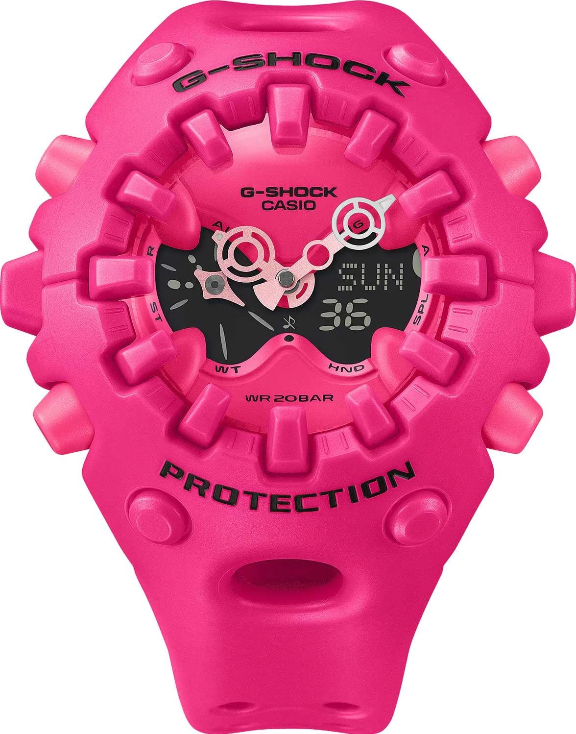 Новинка в серии G-Shock с ярким футуристичным дизайном. Система собственной разработки Casio Shock Release Hand, в которой стрелки не крепятся к валу напрямую, а крепятся с помощью магнитного поля, что позволяет эффективно поглощать и рассеивать удары. Противоударный корпус защищает механизм от ударов и вибрации. Двойная подcветка: циферблат и ЖК-дисплеи подсвечиваются светодиодом, благодаря наличию функции задержки, после отпускания кнопки освещение горит еще несколько секунд. Настраиваемое послесвечение 1,5 или 3сек. Цвет подсветки: белый. Необритовое светонакопительное покрытие обеспечивает длительное послесвечение в темноте даже после кратковременного нахождения на свету.