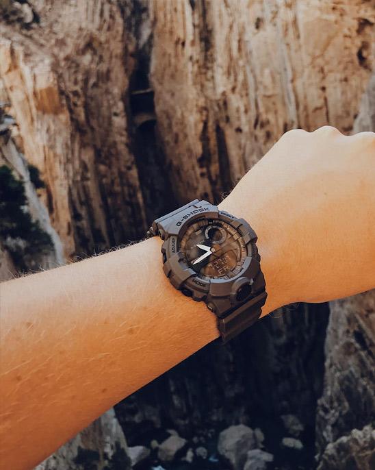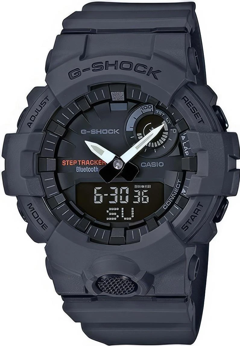 <b>Многофункциональные ударопрочные часы G-Shock из серии G-Squad с мониторингом ежедневной активности благодаря встроенному акселерометру. Еще GBA-800 может обмениваться данными с мобильным приложением в смартфоне по Bluetooth. Водозащита 200 метров.</b><br><br>Кварцевый механизм, модуль 5554, с двойной цифро-аналоговой индикацией на жидкокристаллическом дисплее и при помощи центральных стрелок. Точность хода не хуже +/-15 секунд в месяц. Элемент питания SR2016 рассчитан на 2 года работы. Встроенный 3-осный умный акселерометр для подсчета ежедневной активности владельца. Функции:<br>• Подсчет количества шагов сделанных владельцем – шагомер от 0 до 999 999 шагов.<br>• Установка ежедневной цели от 1000 до 50000 шагов.<br>• Напоминание об отсутствии активности.<br>• Память для сохранения истории активности.<br>• Графическое отображение количества шагов за последние 11 часов, 6-уровневый график.<br>• Индикатор шага.<br>• Подключение Bluetooth 4.0 - часы могут обмениваться данными с мобильным приложением G-Shock Connected в смартфоне по технологии Bluetooth. Благодаря обеспечивающей экономичное расходование энергии технологии возможно выполнение ряда полезных функций.<br>• Авиарежим – нажатием кнопки часы переключаются в режим оффлайн, переставая передавать/принимать сигнал bluetooth на время перелета.<br>• Двойная суперяркая LED-подсветка, освещающая и основной циферблат, и жидкокристаллический дисплей. Светодиоды автоматически активируется при подъеме и повороте руки или при нажатии соответствующей кнопки. Настраиваемое время свечения 1,5 или 3 сек. Белый цвет подсветки.<br>• Отображение времени во втором часом поясе.<br>• Секундомер с точность 1/100 сек (в течение первого часа, последующее время с точность 1 сек.), общее время измерений 24 часа.<br>• Сигнал целевого времени до 10 настроек.<br>• Журнал с памятью на 200 записей о времени и дате старта, измеренном времени, lap/split<br>• Таймер с точностью 1/1 сек. и общим временем измерений 60 минут, обозначение автоповторов от 1 до 20, автостарт.<br>• 5 ежедневных будильников и ежечасный сигнал.<br>• Функция перемещения стрелок - нажатие на кнопки перемещает стрелки в такое положение, которое позволит легко считать информацию с маленьких цифровых дисплеев.<br>• Автоматический календарь не требует дополнительных настроек и показывает дату, день недели и месяц, которые могут быть настроены вплоть до 2099 года.<br>• Отображение времени можно в 12/ 24-часовом формате.<br>• Вкл./Выкл. звука кнопок.<br>• Режим экономии электроэнергии – при продолжительном отсутствии активности часы переходят в спящий режим.<br><br>Спортивный дизайн корпуса с ударопрочной конструкцией. Различные цветовые решения и использованием полимерного материала. Технические характеристики:<br>• Комбинированный корпус с фирменной для Baby-G конструкцией из полимерного кожуха и стального внутреннего контейнера.<br>• Ширина корпуса составляет 48,6 мм, высота - 54,1 мм, толщина - 15,5 мм. Вес приблизительно 61 грамм.<br>• Минеральное стекло устойчивое к возникновению царапин.<br>• Циферблат с объемной структурой, часовые метки 3D.<br>• Люминесцентное необритовое покрытие на стрелках и часовых метках.<br>• Задняя крышка из нерж. стали с гравировкой крепится к корпусу 4 винтами.<br>• Водостойкость 200 метров (20 АТМ)<br>• Полимерный ремешок - прочный и долговечный, стандартная застежка с шипом.