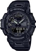 Мужские противоударные аналого-цифровые кварцевые часы из серии G-Shock с модулем Bluetooth Smart. Круглый пластиковый корпус. Циферблат с жидко-кристаллическим дисплеем. Минеральное стекло. Водозащита 200 м. Пластиковый ремешок. Простая пряжка.
