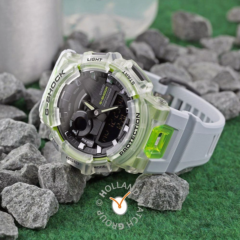 Мужские наручные часы Casio G-Shock GBA-900SM-7A9. Точный кварцевый механизм с аналого-цифровой индикацией. Полимерный корпус надежно защищает часы от механических повреждений. Светодиодная подсветка. На циферблате отображается текущее число, месяц и день недели. Ударопрочная конструкция часов защищает от ударов и вибрации. Функция Bluetooth позволяет удобно отображать все метрики с часов на экране смартфона, а также выводить на часы уведомления о входящих звонках, сообщениях и имейлах. Функция хронографа. Функция таймера. Таймеры обратного отсчета напомнят Вам о текущих или особенных событиях, издав звуковой сигнал в установленное время. Для подсветки дисплея используется светодиод, а так же имеет функцию автоматического включения подсветки, если Вы наклоните часы к своему лицу. Функция будильника. Аккумулятор обеспечивает часы достаточным питанием приблизительно на 2 года. Индикатор запаса хода. После настройки автоматический календарь всегда отображает точную дату. Модель оснащена технологией SMART ACCESS, обеспечивающей быстрый и интуитивно понятный доступ ко всем важным функциям часов с помощью электронной заводной головки. Отображение времени возможно в 12-часовом или 24-часовом формате. Полимерный ремешок. Натуральный полимерный материал является идеальным для изготовления ремешка благодаря своей чрезвычайной прочности и гибкости. Прочное, устойчивое к царапинам минеральное стекло защищает часы от повреждений.Часы являются водонепроницаемыми до 20 Бар. Цвет корпуса: Серый. Цвет циферблата: Черный. Ширина (с заводной головкой): 51мм. Толщина: 17мм. Гарантия: 2 года. Другие наименования модели: GBA-900SM-7A9ER.