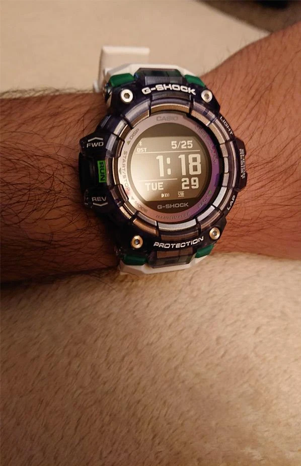 Мужские наручные часы Casio G-Shock GBD-100SM-1A7. Точный кварцевый механизм с цифровой индикацией. Полимерный корпус надежно защищает часы от механических повреждений. Светодиодная подсветка. На циферблате отображается текущее число, месяц и день недели. Ударопрочная конструкция часов защищает от ударов и вибрации. Функция Bluetooth позволяет удобно отображать все метрики с часов на экране смартфона, а также выводить на часы уведомления о входящих звонках, сообщениях и имейлах. Функция хронографа. Для подсветки дисплея используется светодиод, а так же имеет функцию автоматического включения подсветки, если Вы наклоните часы к своему лицу. Функция будильника. Аккумулятор обеспечивает часы достаточным питанием приблизительно на 2 года. Отображение текущего времени в основных городах и конкретных областях по всему миру. После настройки автоматический календарь всегда отображает точную дату. Отображение времени возможно в 12-часовом или 24-часовом формате. Полимерный ремешок. Натуральный полимерный материал является идеальным для изготовления ремешка благодаря своей чрезвычайной прочности и гибкости. Прочное, устойчивое к царапинам минеральное стекло защищает часы от повреждений.Часы являются водонепроницаемыми до 20 Бар. Цвет корпуса: Черный. Цвет циферблата: Черный. Гарантия: 2 года.
