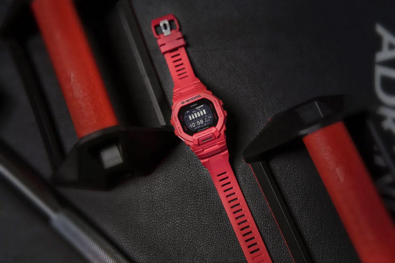 Мужские наручные часы Casio G-Shock GBD-200RD-4E. Точный кварцевый механизм с цифровой индикацией. Полимерный корпус надежно защищает часы от механических повреждений. Светодиодная подсветка. На циферблате отображается текущее число, месяц и день недели. Ударопрочная конструкция часов защищает от ударов и вибрации. Функция Bluetooth позволяет удобно отображать все метрики с часов на экране смартфона, а также выводить на часы уведомления о входящих звонках, сообщениях и имейлах. Функция хронографа. Функция таймера. Таймеры обратного отсчета напомнят Вам о текущих или особенных событиях, издав звуковой сигнал в установленное время. Функция будильника. Аккумулятор обеспечивает часы достаточным питанием приблизительно на 2 года. После настройки автоматический календарь всегда отображает точную дату. Модель оснащена технологией SMART ACCESS, обеспечивающей быстрый и интуитивно понятный доступ ко всем важным функциям часов с помощью электронной заводной головки. Отображение времени возможно в 12-часовом или 24-часовом формате. Полимерный ремешок. Натуральный полимерный материал является идеальным для изготовления ремешка благодаря своей чрезвычайной прочности и гибкости. Прочное, устойчивое к царапинам минеральное стекло защищает часы от повреждений.Часы являются водонепроницаемыми до 20 Бар. Цвет корпуса: Красный. Цвет циферблата: Черный. Ширина (с заводной головкой): 46мм. Толщина: 15мм. Гарантия: 2 года. Другие наименования модели: GBD-200RD-4, GBD-200RD-4D.